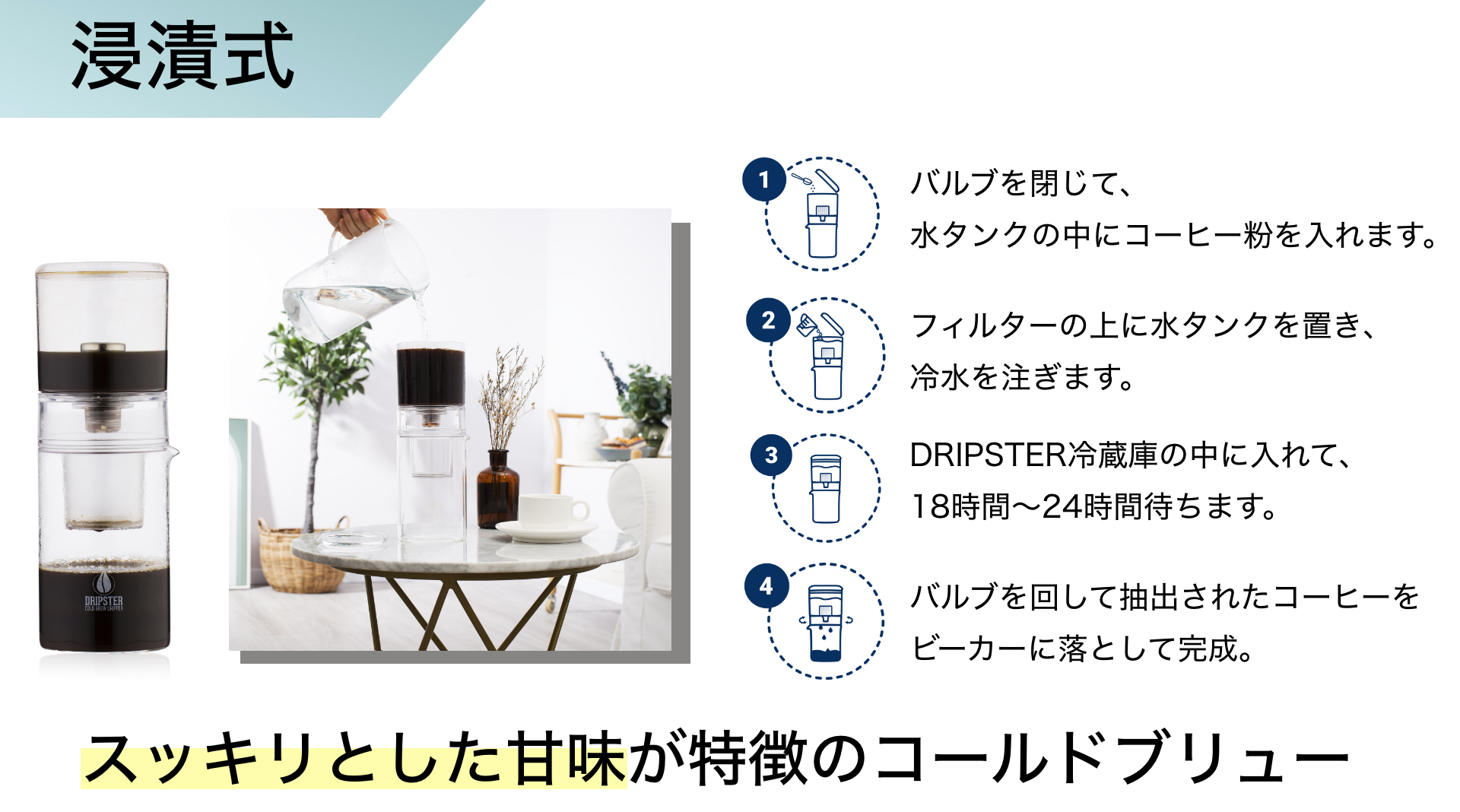 ※浸漬式=コーヒー粉と水を長時間かけて漬ける抽出方法