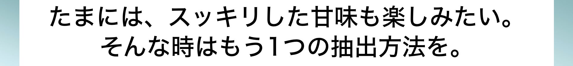 水を使用した低温抽出のため、苦味やエグみといったような雑味成分は抑えられ、旨味成分のコクや香りを最大限に抽出することが可能です。