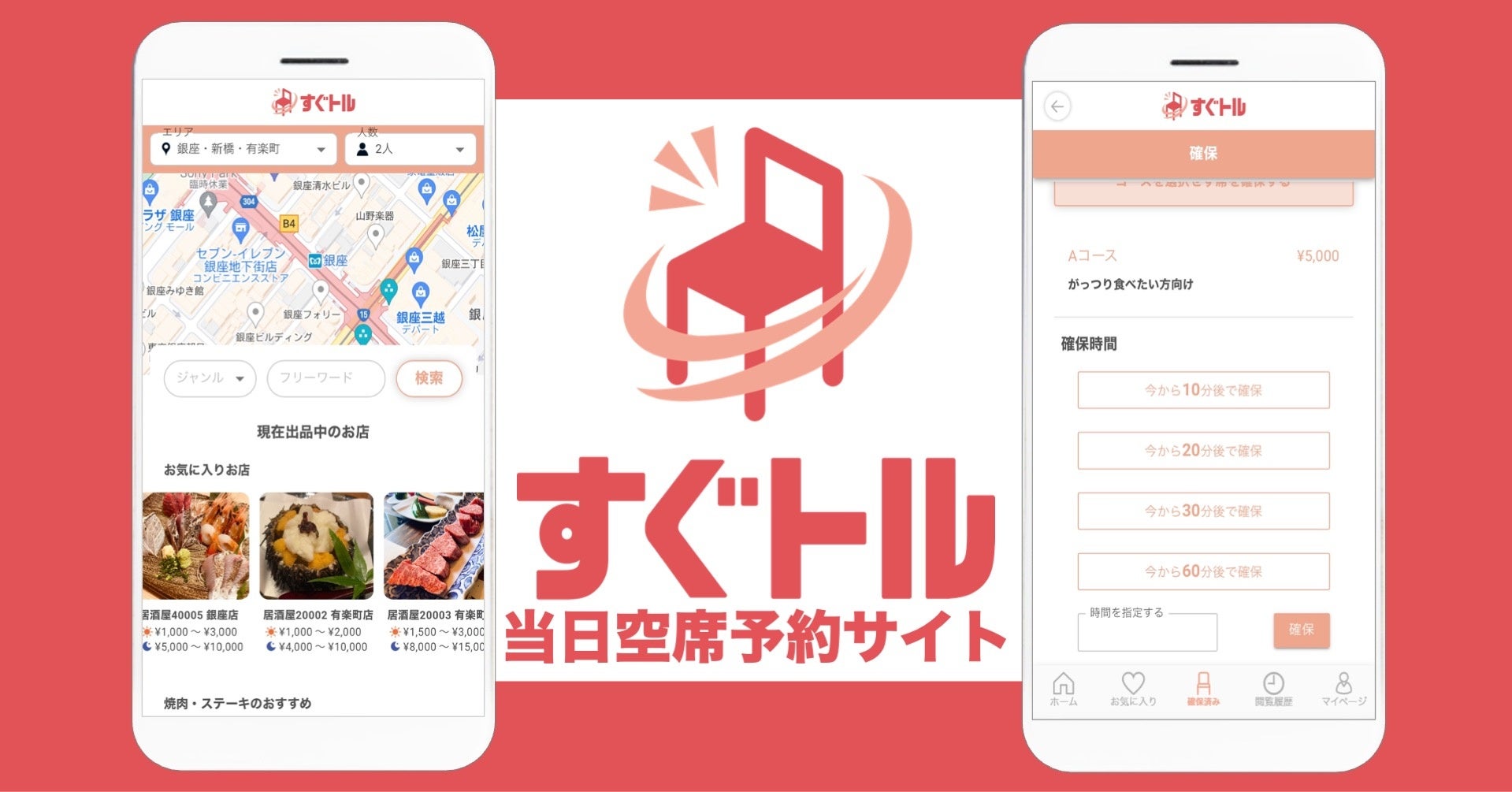 株式会社シートマーケット(本社:埼玉県和光市、代表取締役:鶴田陽平)は、飲食店の当日空席予約サイト「すぐトル」を2022年7月より正式リリースいたしました。当初は銀座・新橋・有楽町エリアに特化し、今すぐ居酒屋やレストランに入りたい生活者と、当日の空席に悩む飲食店をリアルタイムにマッチングし、両者の困り事を解消できるよう努めて参ります。