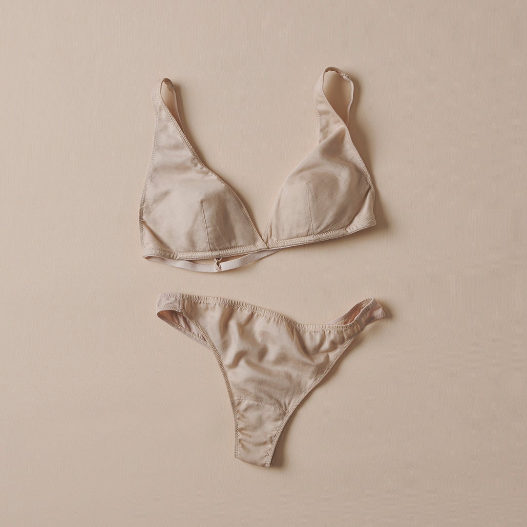 こだわりのオーガニックコットンでハイゲージに編まれたニットとモダンなカッテイングが調和した愛すべきランジェリーとなりました。カラーバリエーションはブラックとベージュの2色展開。どちらも身につける人の個性を引き立て、日常思わず手に取ってしまうようなアイテムです。