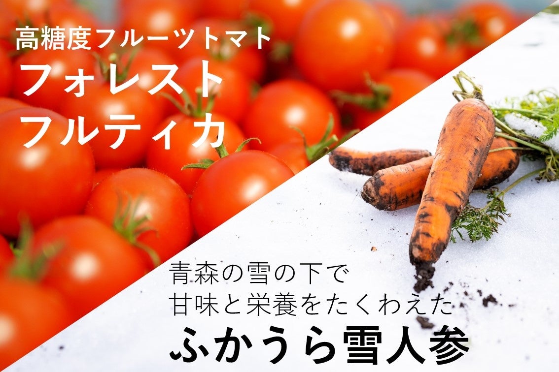 アイメック農法で作った高糖度フルーツトマト「フォレストフルティカ」、青森の雪の中で甘味と栄養を蓄えた「ふかうら雪人参」、その他国産甘夏や調味料まで。一つ一つの原材料をしっかり選び抜きました。