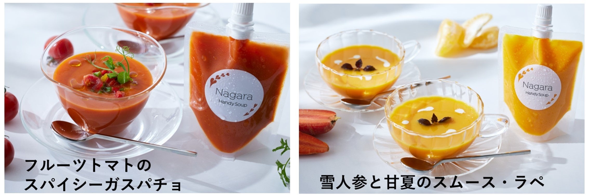●ラインナップ:フルーツトマトのスパイシーガスパチョ/雪人参と甘夏のスムースラペ
