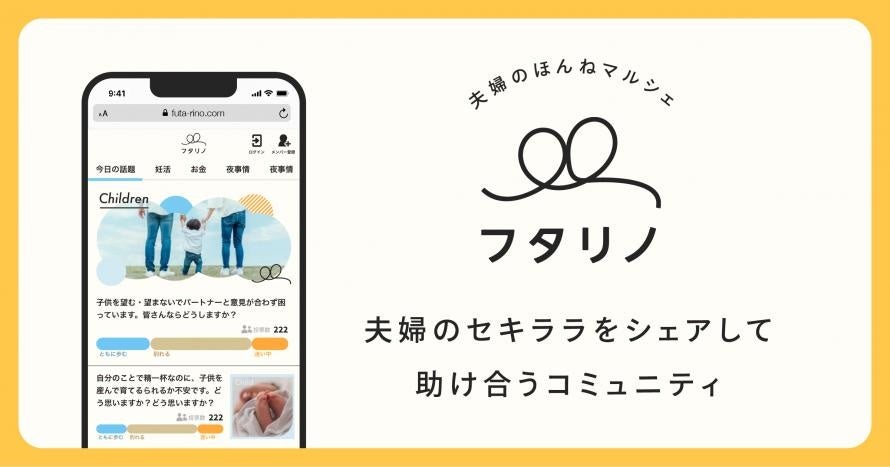 フタリノは夫婦のセキララをシェアし合うメディアコミュニティです。