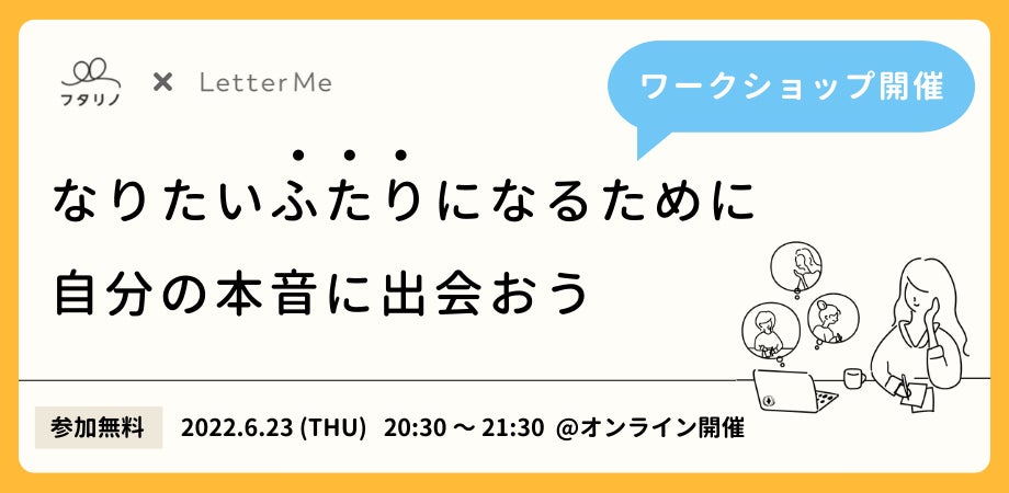 自分に向きあう時間が届くサブスクサービス「LetterMe」を提供する株式会社LetterMe(本社:東京都渋谷区、代表:西村静香)と夫婦のセキララをシェアして助け合うコミュニティを運営するフタリノ株式会社(本社:東京都新宿区、代表:清水愛)は、パートナーとのより良い関係を築いていきたい夫婦やカップル向けに、本音と向き合うオンラインワークショップを6月23日(木)に開催することをお知らせします。