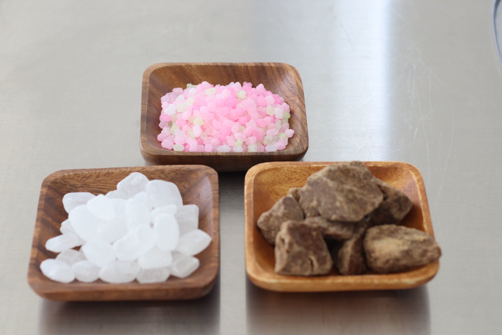 砂糖は定番の氷砂糖に加えて、変わり種の金平糖、黒砂糖の3種。それぞれ各1種類ずつ選択可能で、組み合わせ次第で30種類の梅酒を作る事が可能です。簡単3ステップ(ボトルの洗浄、梅の下準備、材料の投入)で仕込んだ後、3カ月程度で飲み頃となります。