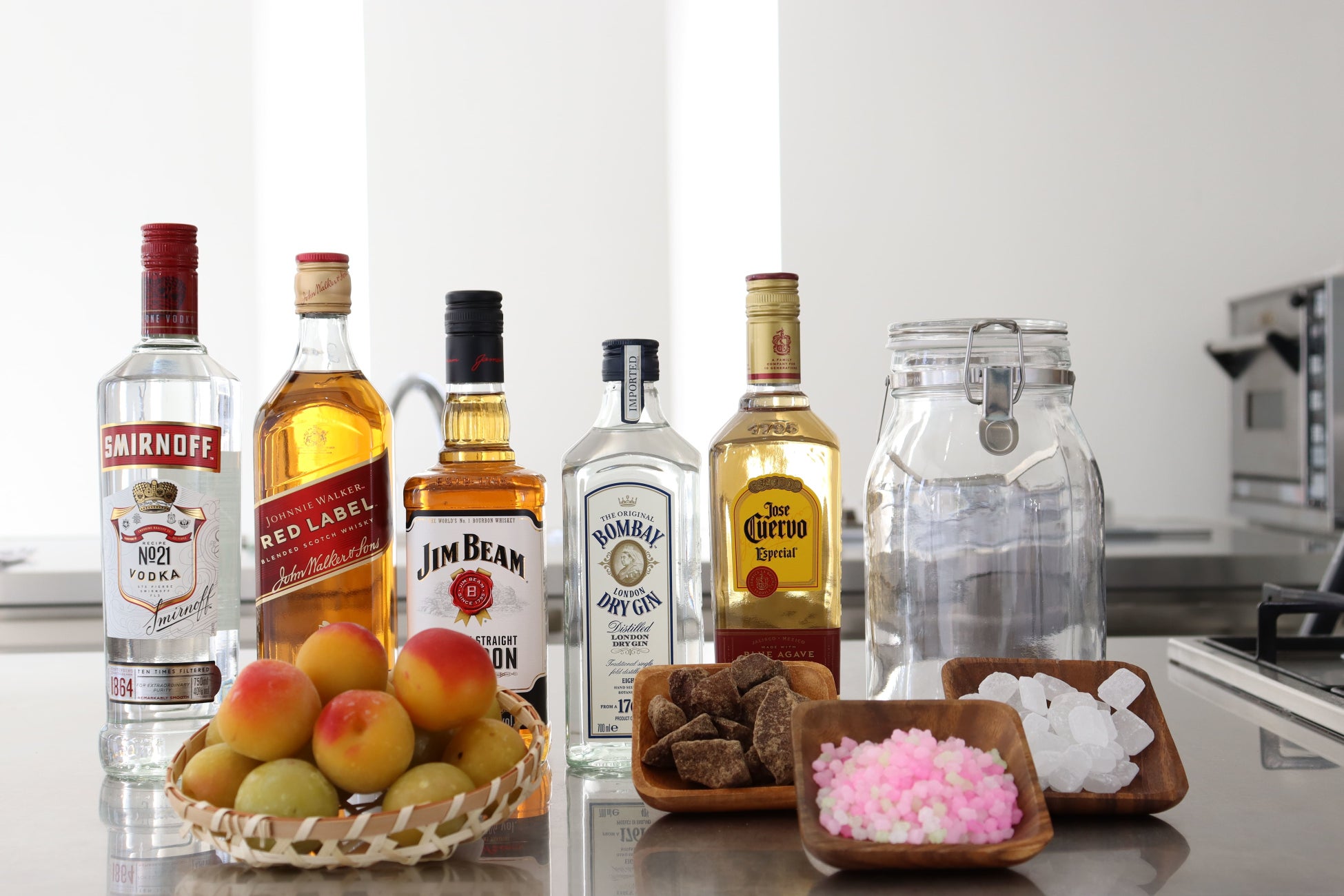 当キットには梅酒づくりに必要な素材がオールインワン。ウイスキー×黒砂糖×南高梅、ウォッカ×金平糖×南高梅等、好きなお酒と砂糖を組み合わせる「世界に一つだけ」のオリジナル梅酒が誰でも簡単に作れます。