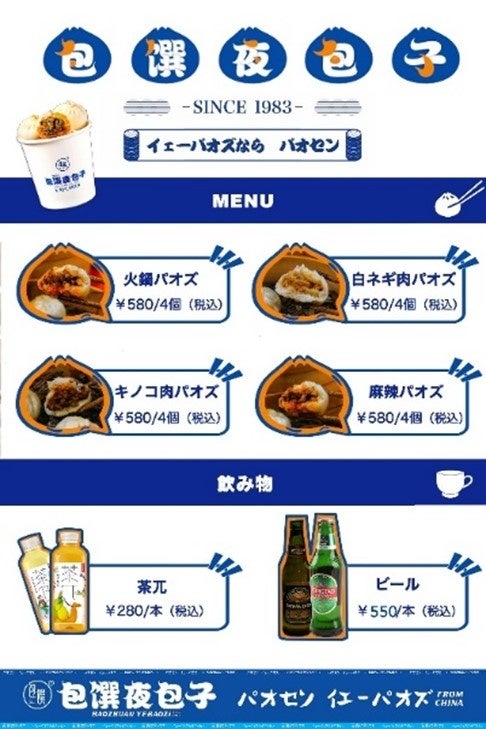 グローバルエステート株式会社(本社:東京都千代田区、代表取締役社長:花沢 裕司)は、中国全土で約300店舗を展開する中華肉まん販売店「包馔夜包子(パオセン イェーパオズ)」を日本初上陸となる第1店舗目として原宿にオープンします。店舗では、本場中国で1日最高60万個の売り上げを記録した「火鍋パオズ」や「麻辣パオズ」をはじめとした一口肉まんを2022年5月14日(土)より販売開始します。