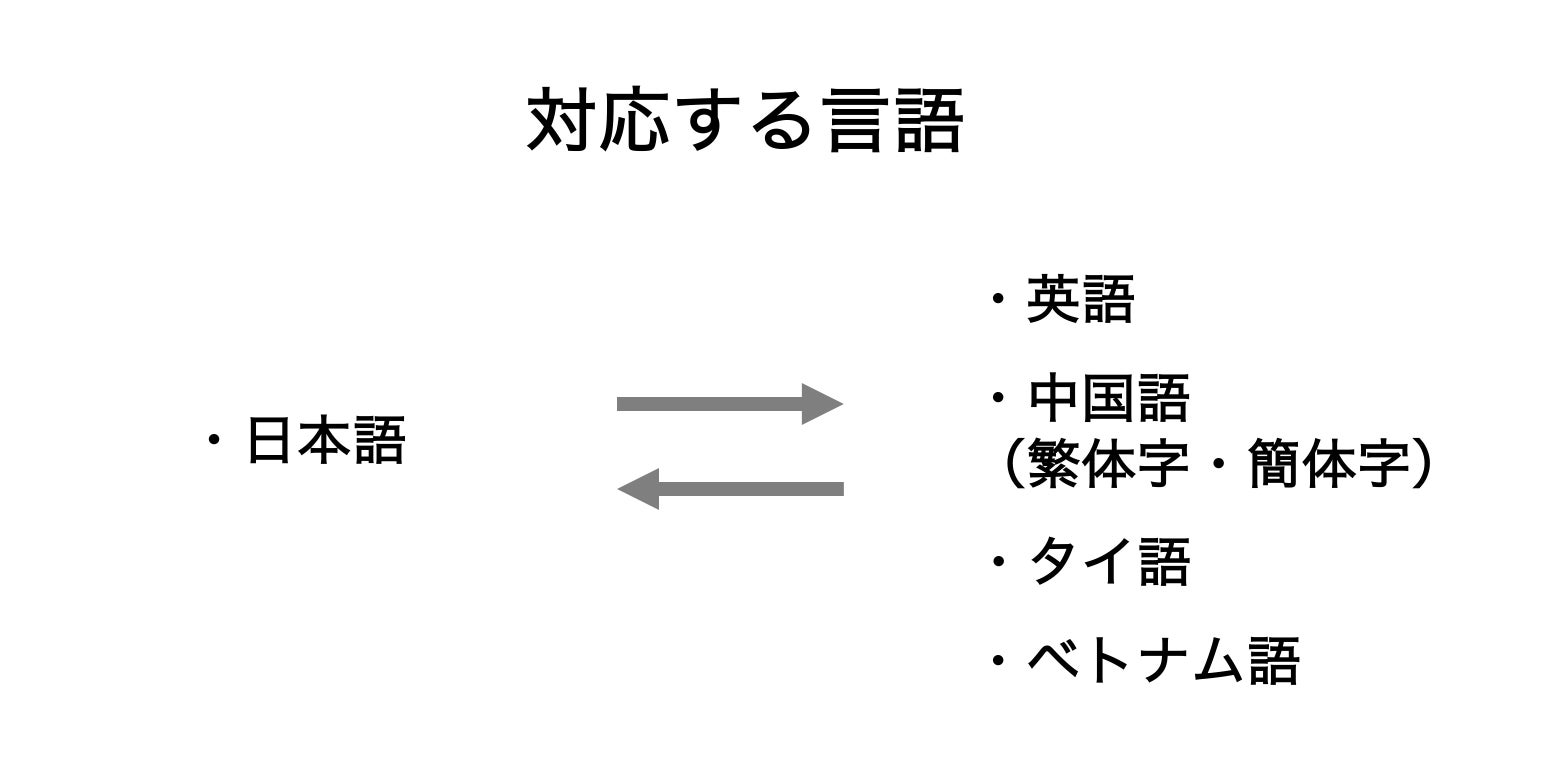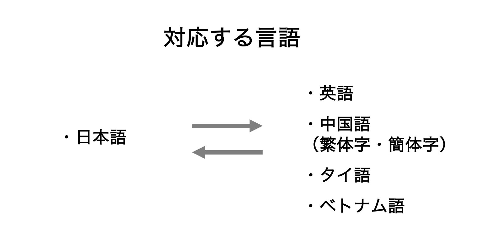 ※今後、ご要望に応じて英語、中国語(繁体字・簡体字)、ベトナム語、タイ語以外の言語についてもサービスを提供していく予定です。