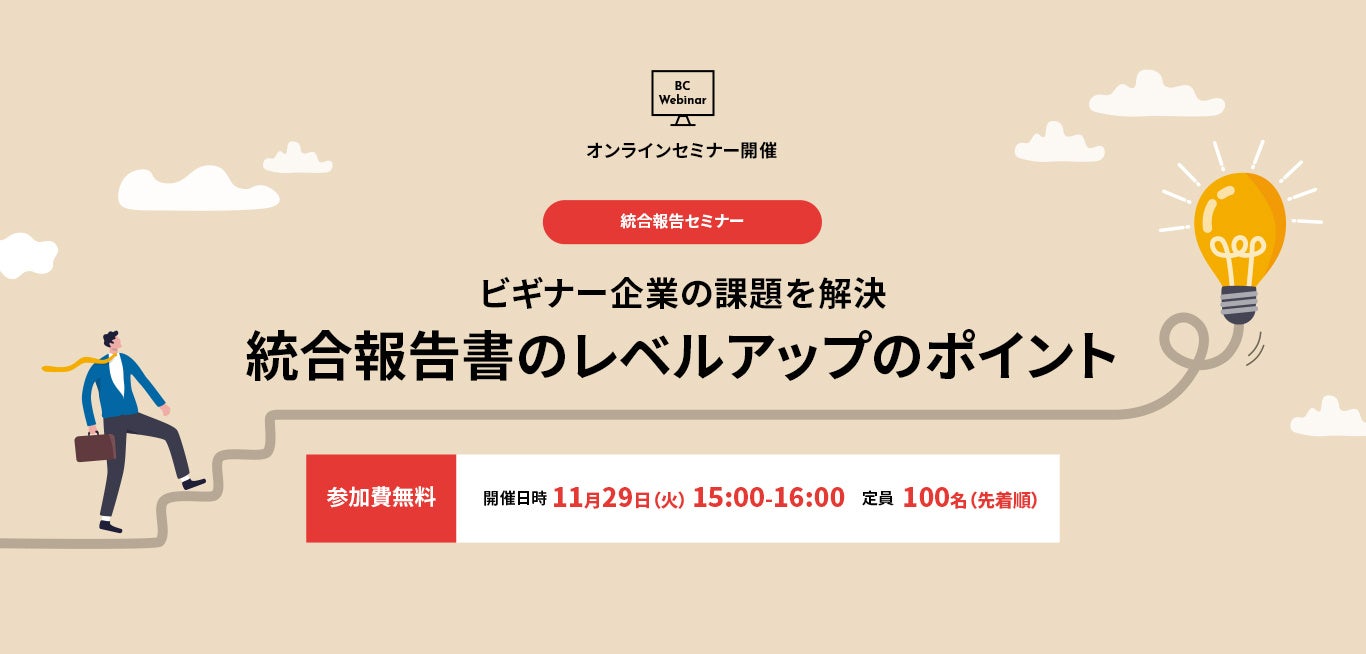 【株式会社ブレーンセンター】無料・先着100名限定/統合報告オンラインセミナー開催 2022/11/29(火)15:00~16:00