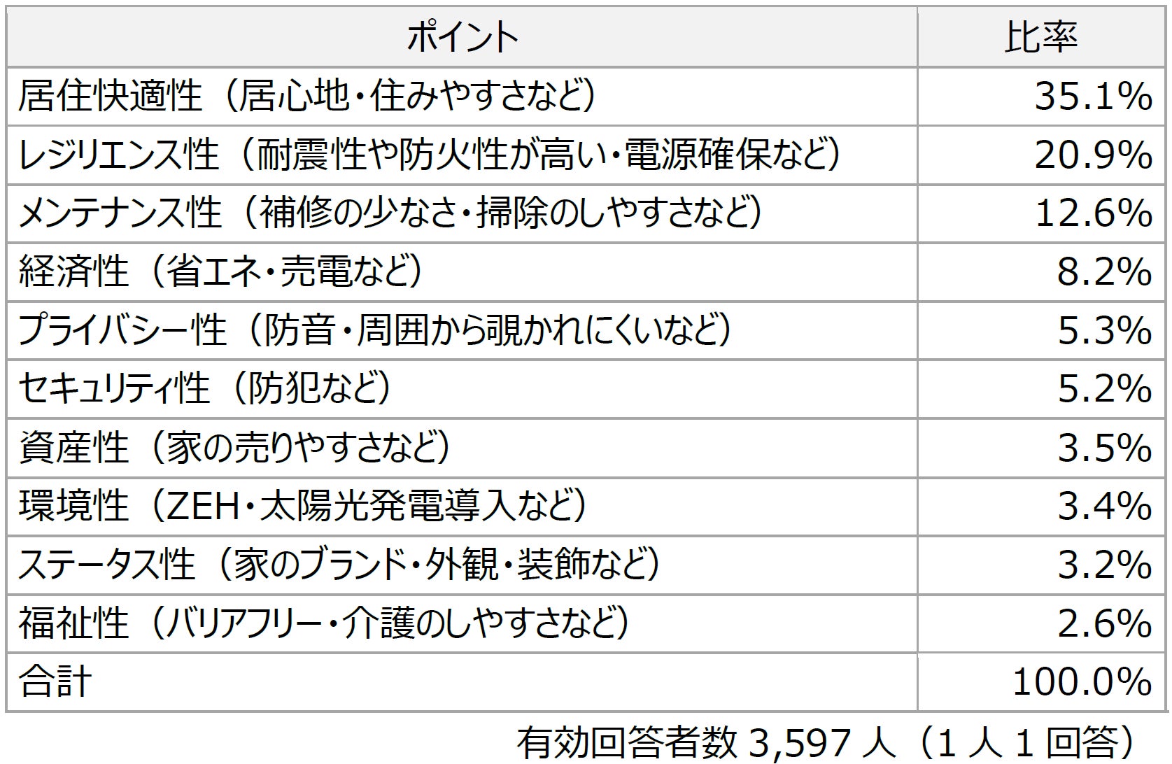 いまあなたが住宅を購入するとしたら、どのような点を重視しますか?最も重視すること(選択肢から、ひとつ選択)