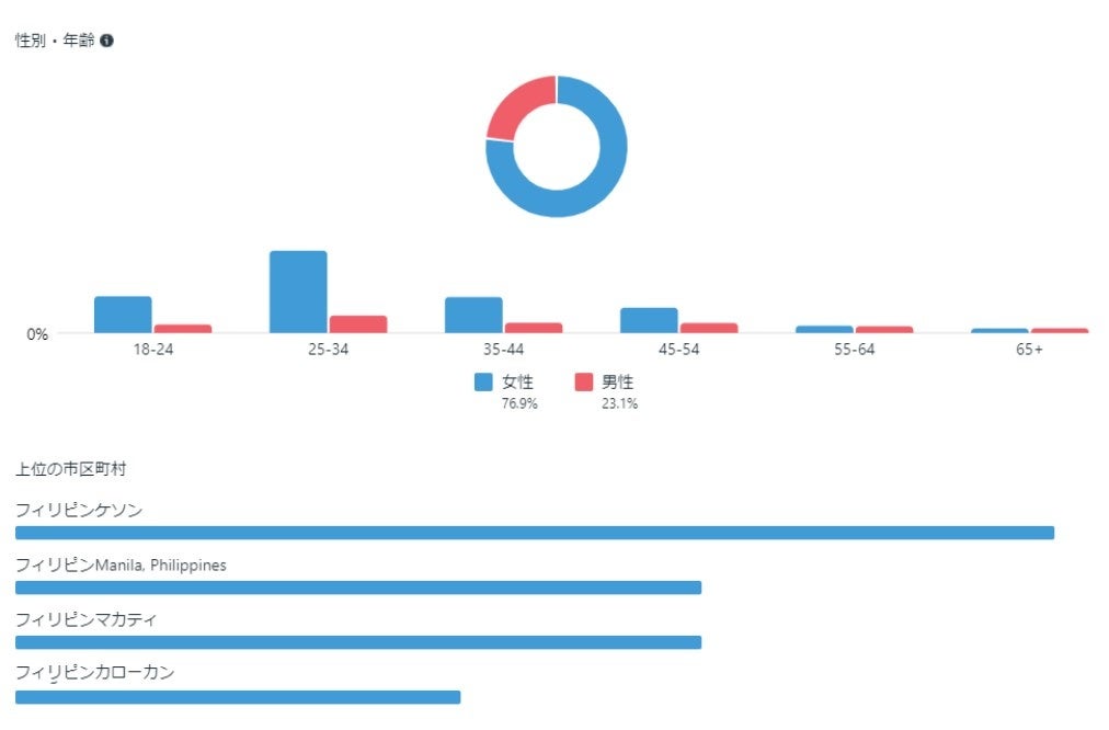 は、開始約2週間で1.8万強のリーチ、「いいね」や「シェア」といった投稿エンゲージメントが3.5千件、動画の視聴は7.5千件と、フィリピン首都圏の若い女性を中心に順調に拡散されています。