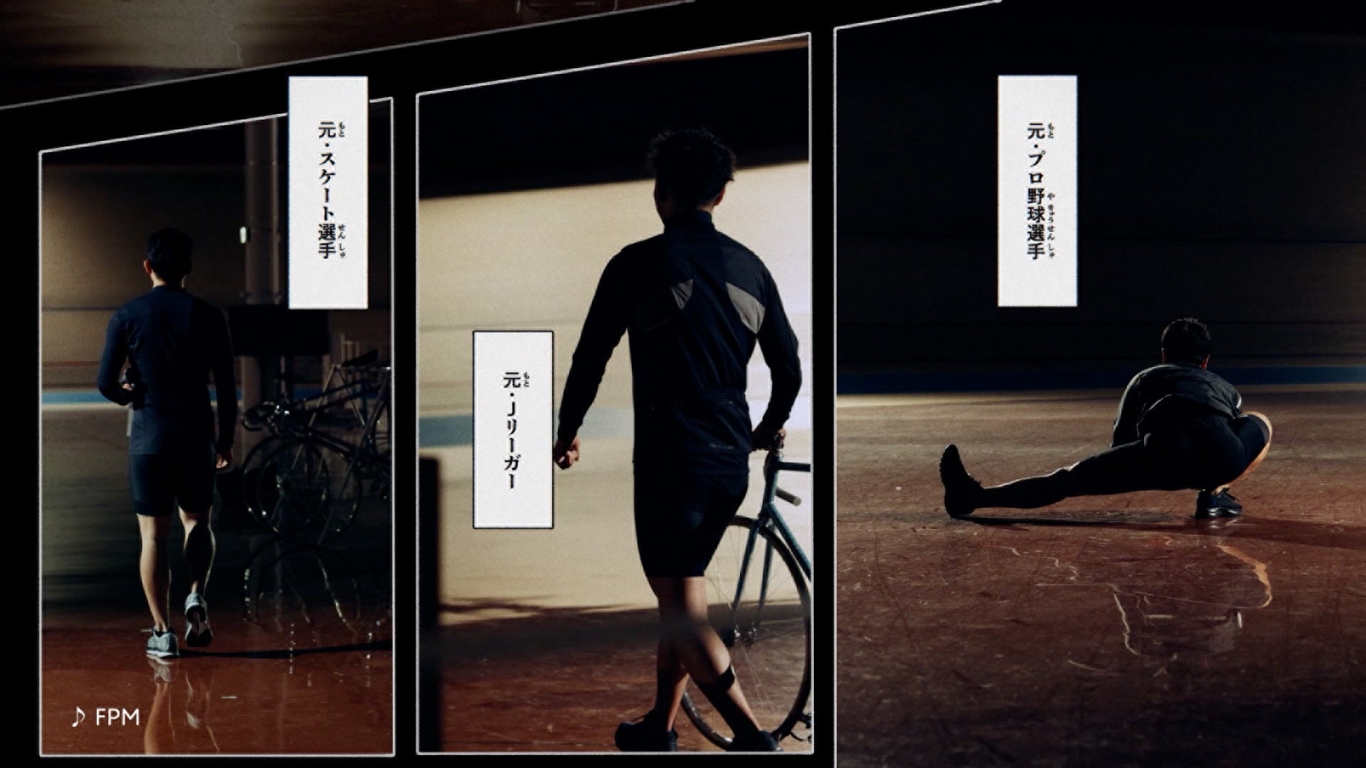 薄暗い競技場に、元プロ野球選手、元Jリーガー、世界で活躍した元スケート選手が登場。スタート地点に横一線に立った3人が走り始めると、映像は3人の昔のユニフォームを着たイラストへ切り替わり、「道が変わっても」「変わらねえよ」の声と共に、自転車にまたがって必死にペダルをこぐ競輪の姿に。「こんなスポーツ、他にないだろ?」昔はそれぞれの道で戦ってきたアスリートが同じゴールへ激走する様子を表現しています。