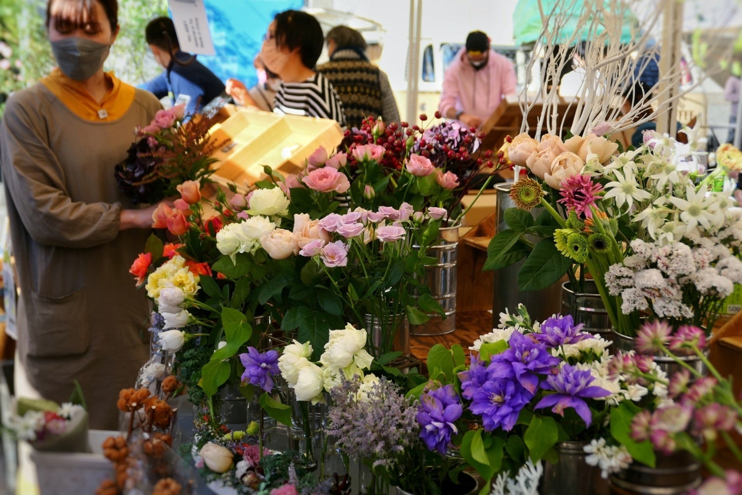 昨年11月のプレ開催を経て、2022年から春と秋の年2回でRose Festivalを本開催。Farmers Marketに多様な出店者さんが集まるのと同じく、神奈川・茨城・愛知・静岡などから薔薇農家さん、花屋さん、プロのフラワーアレンジの方々、バラ科の果物を育てる農家さんやその食材を使った加工品の出店者さんなど。