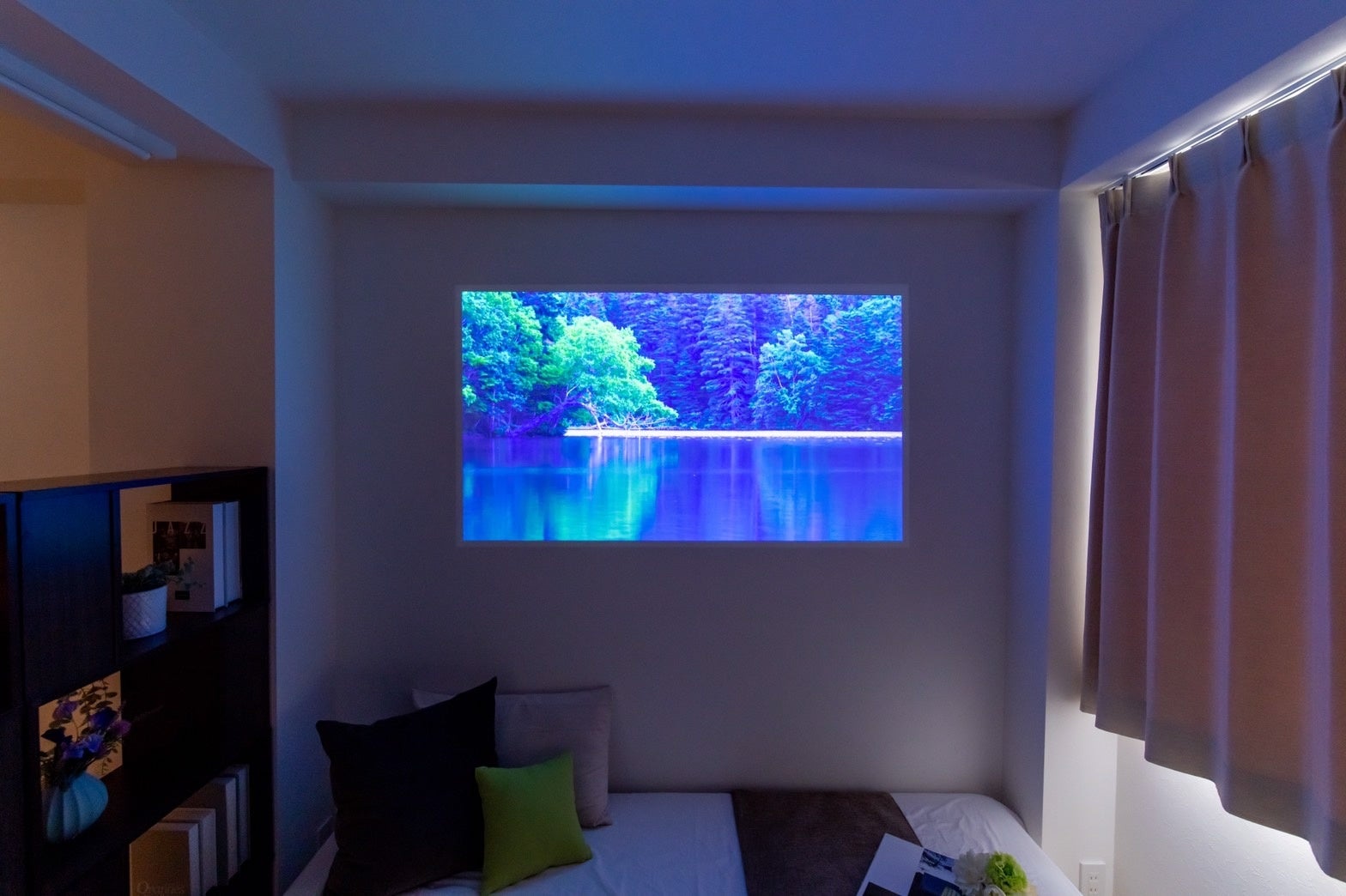 また、1Rのお部屋にはスピーカー一体型のスマートシーリングライトを備え付けており、天井から降り注ぐBGMがレストランやカフェのような空間を演出します。