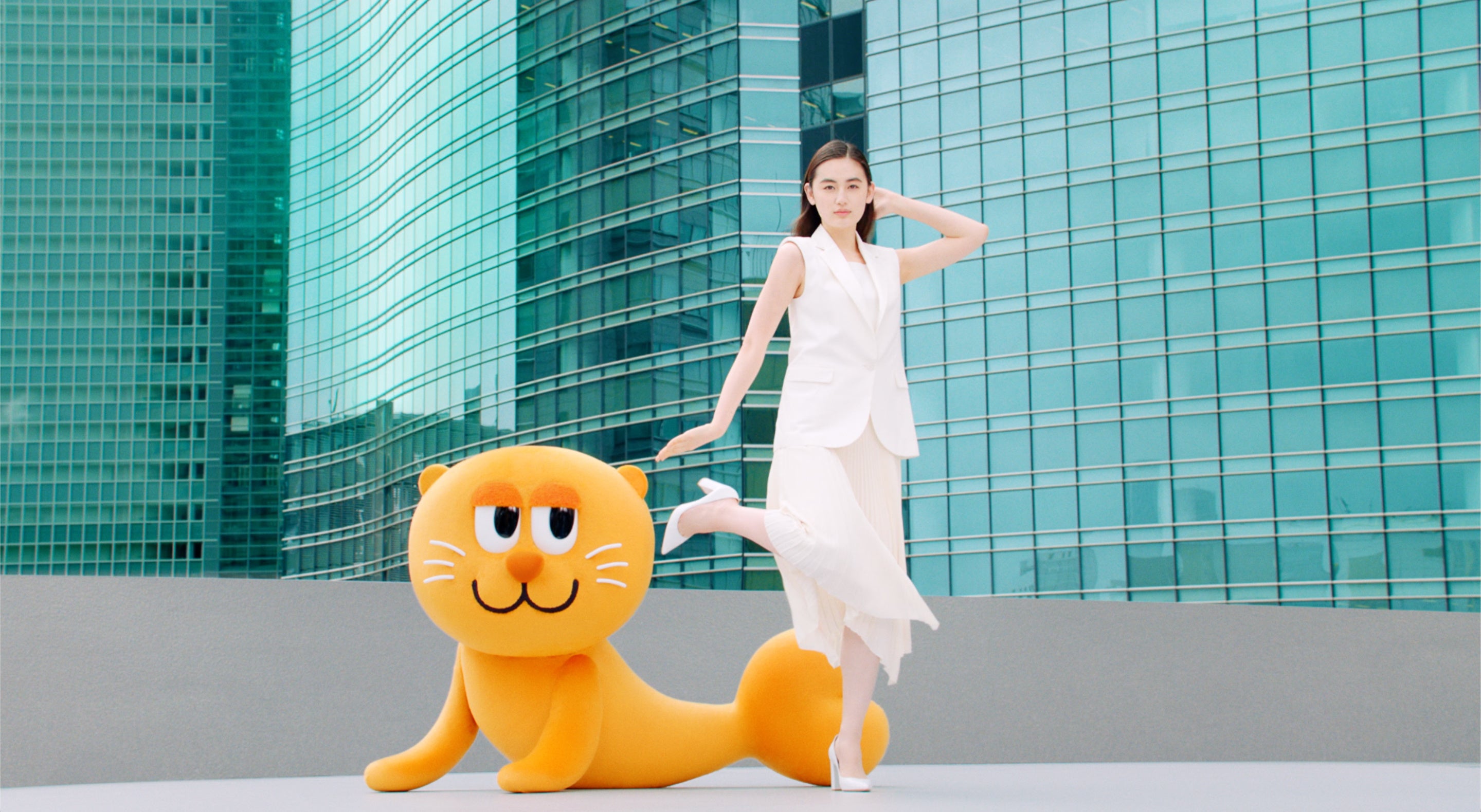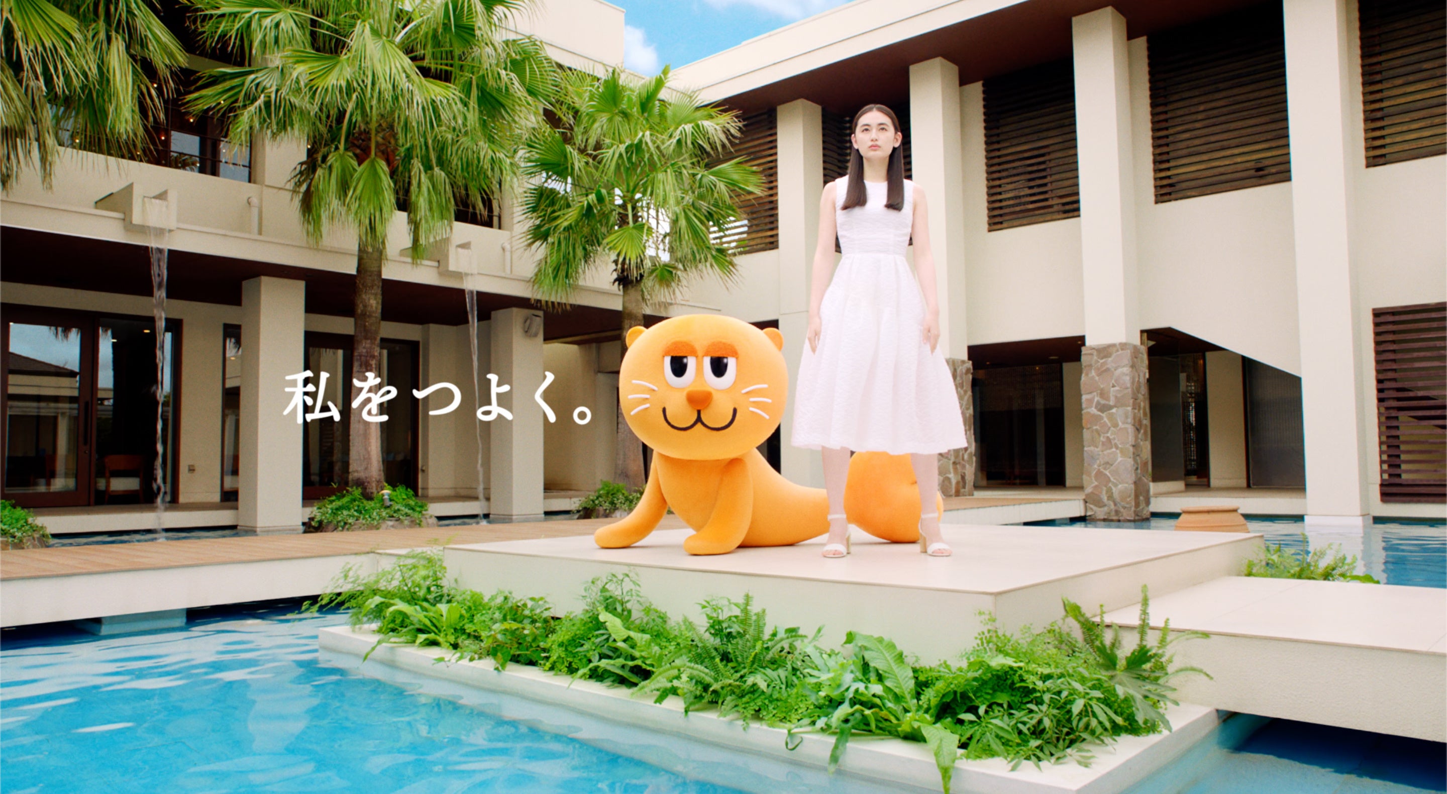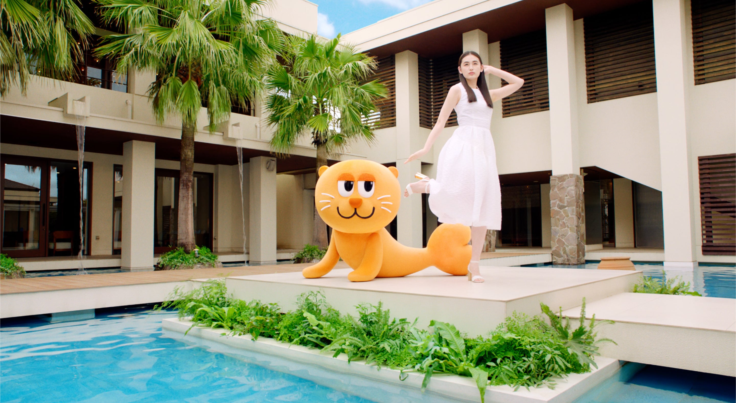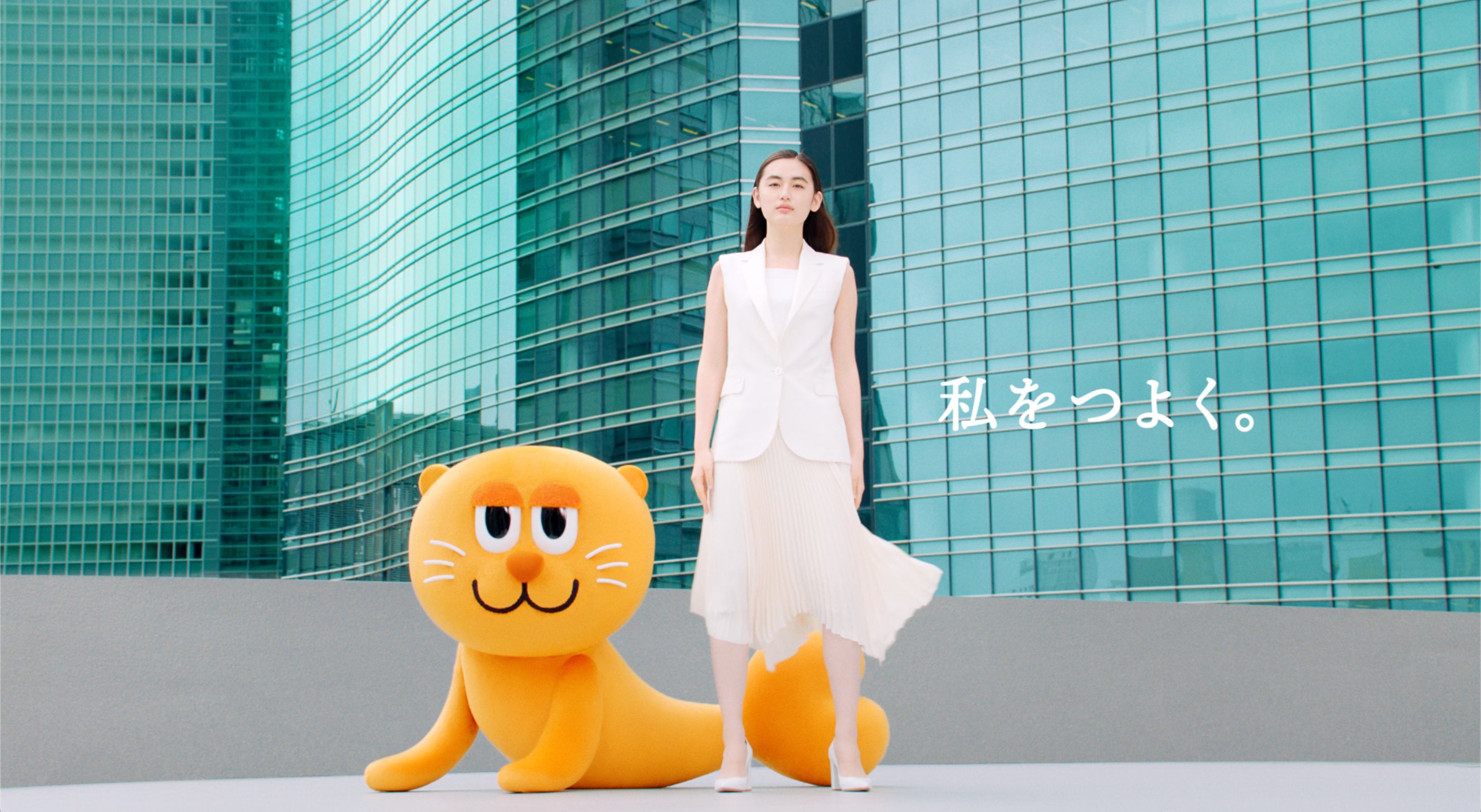 新CMでは、凛とした佇まいの美女と謎のマスコットキャラクターが登場。リズミカルな歌とともに、突如その美女がコミカルなダンスを踊り出します。その様子をじっと見守る生きものの正体は、オリジナルキャラクターの”ルシアシカ”。