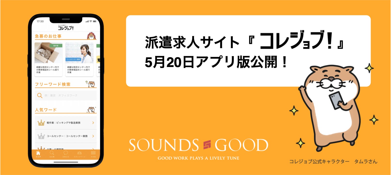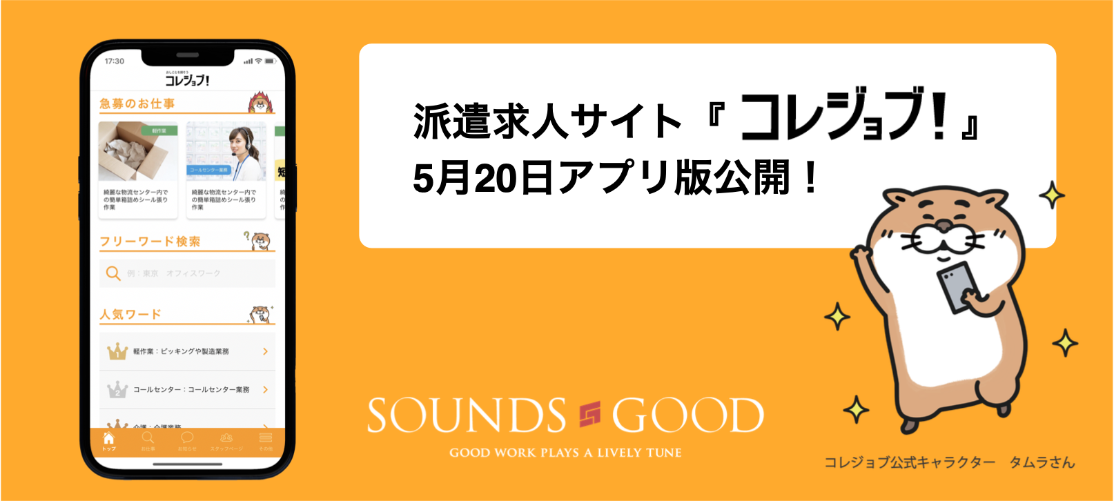 サウンズグッドが運営する派遣求人サイト『コレジョブ』5月20日(金)よりスマホアプリ版を提供開始
