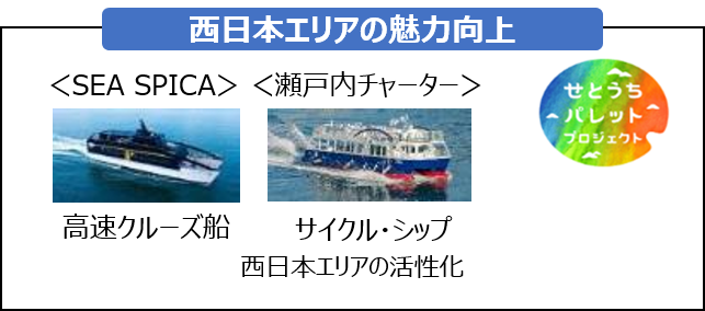 それらの活動によって、データアナリティクス分野、多機能鉄道重機の開発、住まいサブスクやワーケーションといった新しいワークライフスタイルの提案、せとうちの魅力向上に活躍する観光型高速クルーザー「シースピカ」の建造などに携わり、また、陸上養殖海産物の流通「PROFISH(プロフィッシュ)」の事業運営も行っております。