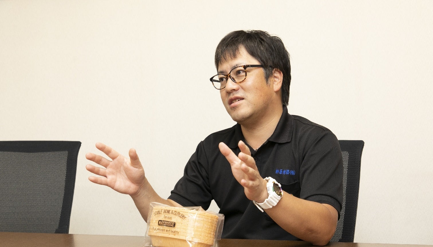 「街に溢れかえるごみを何とかしたい」、そんな友人の思いに、タイでプラスチックごみを見た時の思いと同じものを感じた。そして、開発・販路の促進を友人一人で抱えていることを知り、もしかしたら、ものづくり企業として培った技術を活かすことができるのではないか。何か特別なご縁を感じ、食べる器の金型製作や販売の協力を申し出た。
