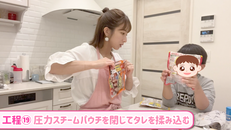 本日公開された辻ちゃんネルの動画「【ある日の夕飯】手をかけるところと抜くところを上手く使い分けて夕飯準備しました!【餃子、チャーシュー、スペアリブ、春雨たまごスープ】」では、辻さんがいつものように夕食づくりを行うところからスタート。この日の献立は大量の手作り餃子と「スチーミー®」で作る簡単豚チャーシュー、鶏チャーシュー、スぺアリブです。動画には次男の昊空(そら)くんも登場し、餃子を包んだり、かたまり肉を入れた「スチーミー®」のパウチを揉んだりしてお手伝いする姿も。「ママが体調悪くてご飯作れないときに(自分で作れるから)覚えておいた方がいいよ!」と昊空くんに伝授する場面もあり、「スチーミー®」の調理の簡単さには辻さんからもお墨付きをいただけた様子。実食時には、ふたりでチャーシューを頬張りながら「ご飯にめっちゃ合う!」と辻さんも昊空くんも絶賛。「がっつり系男子なら丼にしてもいいんじゃない?」と主婦ならではのアイディアが飛び出す場面もありました。