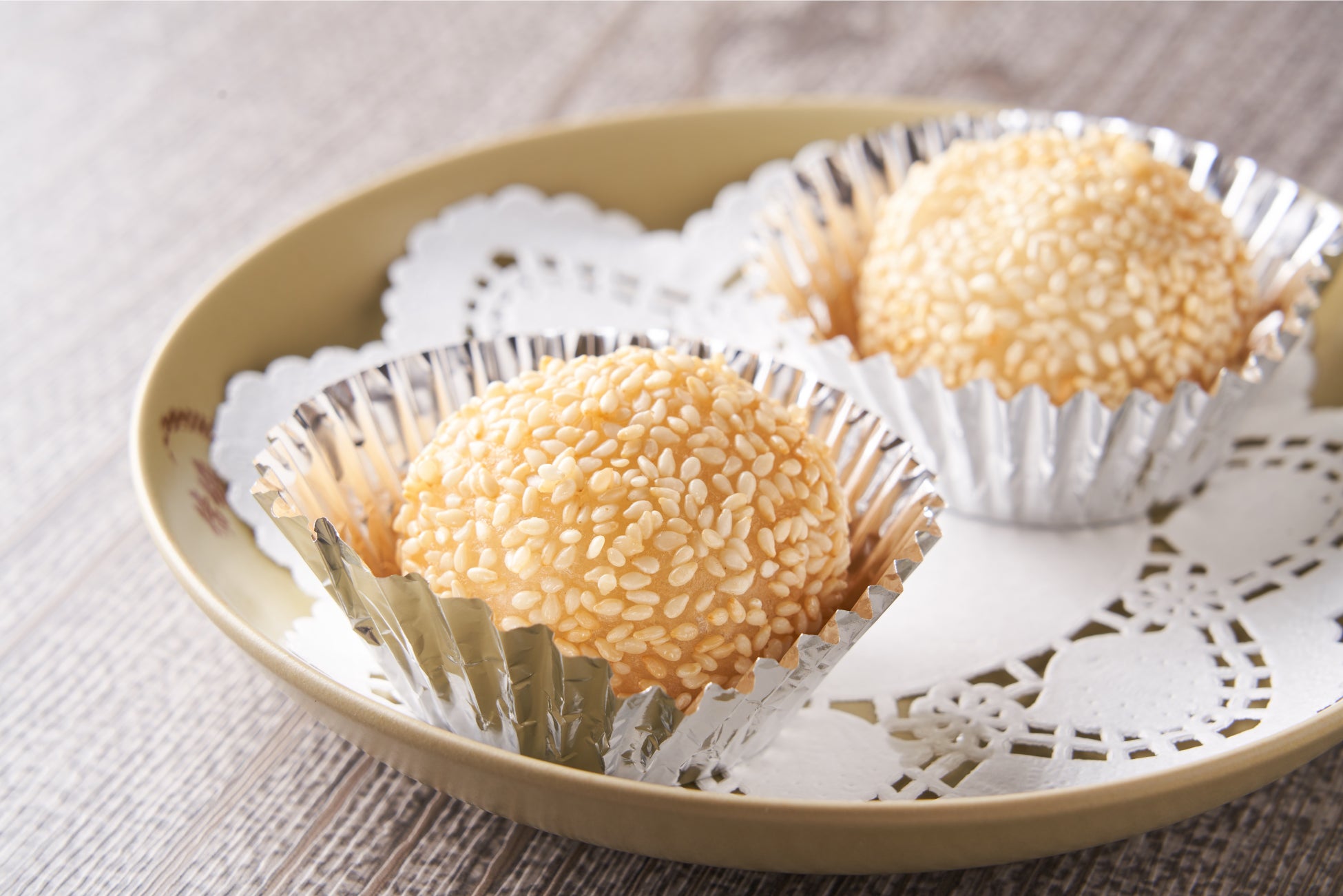 蓮粉のあんが入ったヴィーガンゴマ団子
