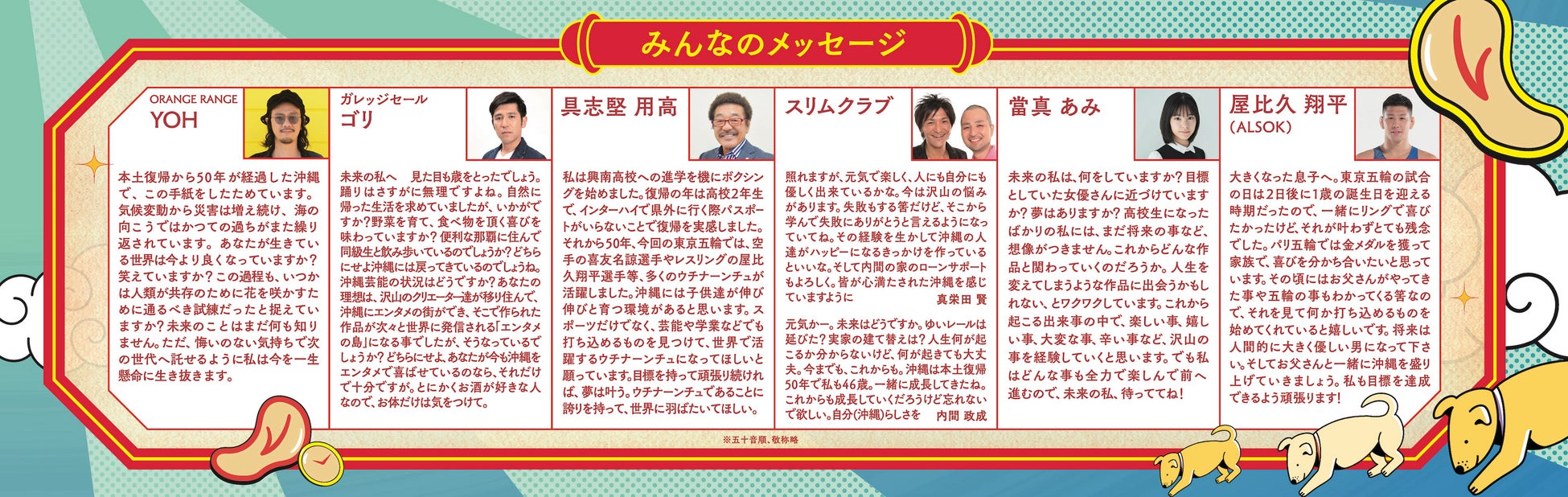 沖縄出身の具志堅用高さんやORANGE RANGEや総勢7名の著名人のメッセージも公開!