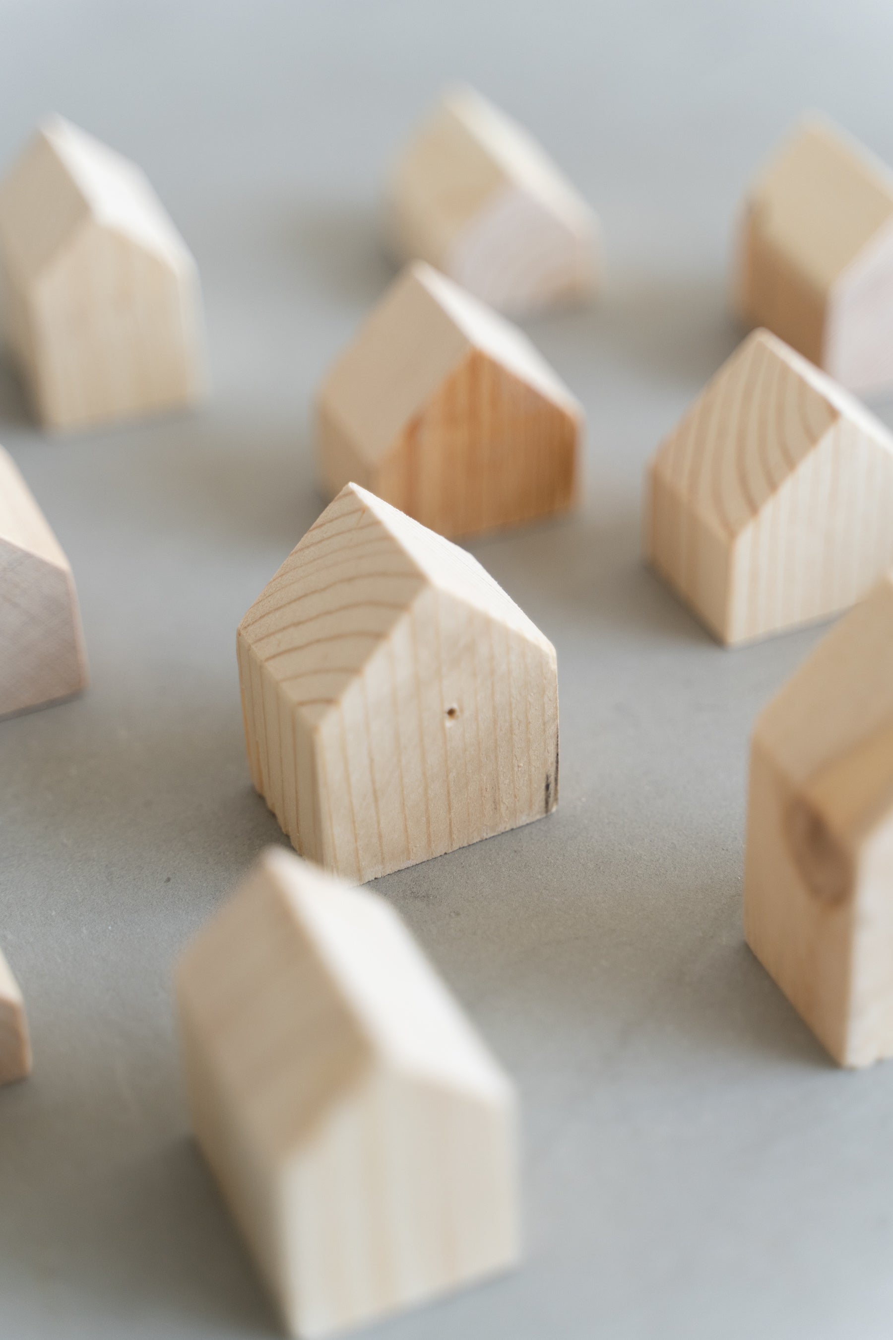 【Wooden Tiny House】 日本の伝統芸能の舞台などで使われた木材をアップサイクルし、 いろいろな家の形を表現しました。インテリアオブジェ、こどものおもちゃとして、自由に塗ったり、飾ったり、遊んだり、思い出とともに楽しめるプロダクトです。あなただけの色や組み合わせを見つけてください。