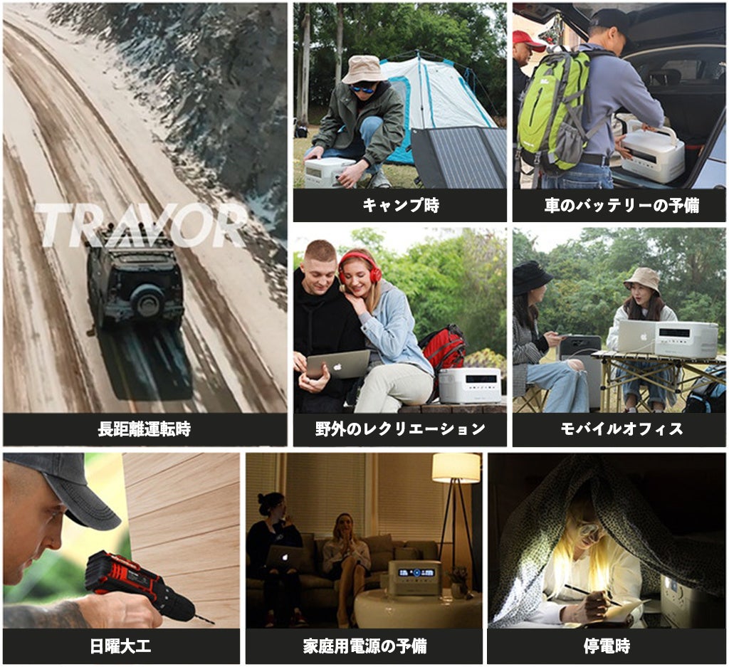 どこにでも携帯でき、互換性が高く、信頼性も高いTRAVORは、キャンプ旅行、ビーチでのバーベキュー、公園での勉強会でも電源供給できます。ドローン、ノートパソコン、スマホの充電をいつでも楽しめます!