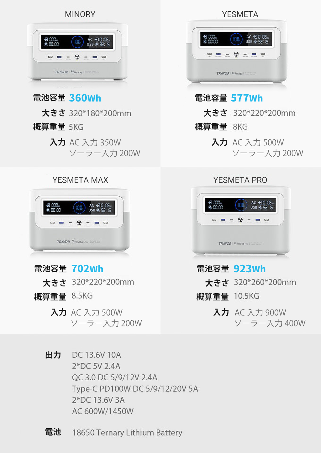 電池容量は360Wh ~ 923Whの中から選ぶことができます。人それぞれのお好みの用途や備えに応じて、充実した商品ラインアップをご用意しています。