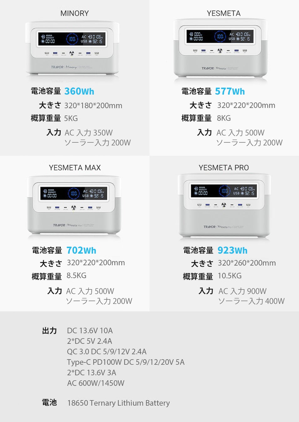 TRAVORシリーズは、これまでで一番早い急速充電機能を持ったポータブル電源で、加えて最大12台のデバイスと4種類の充電方法に対応しています。停電中でも、重要な電化製品、電子機器や設備を稼働させ続けることが出来ます。緊急時はもちろん、いつもの日常でもTRAVORが活躍します。