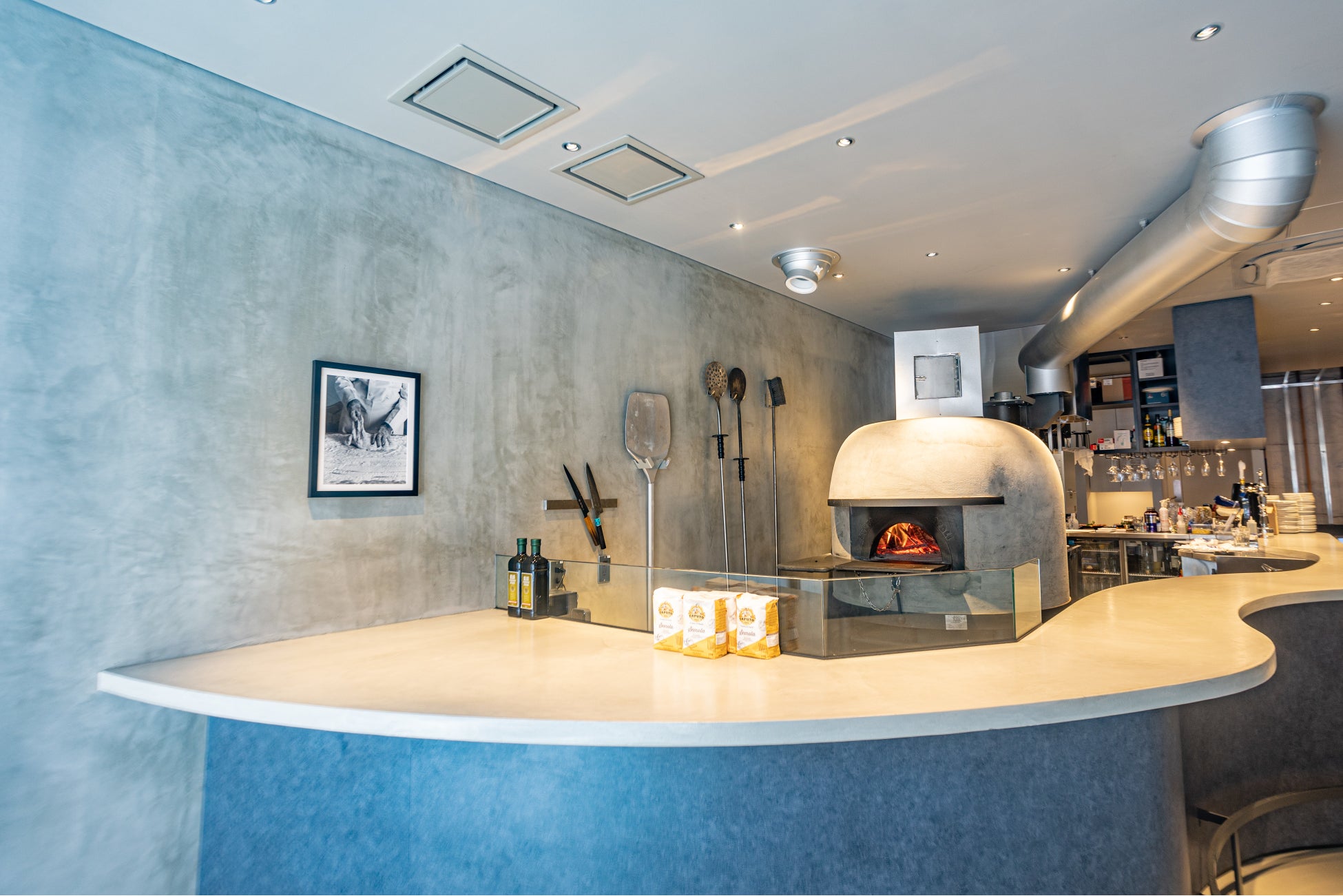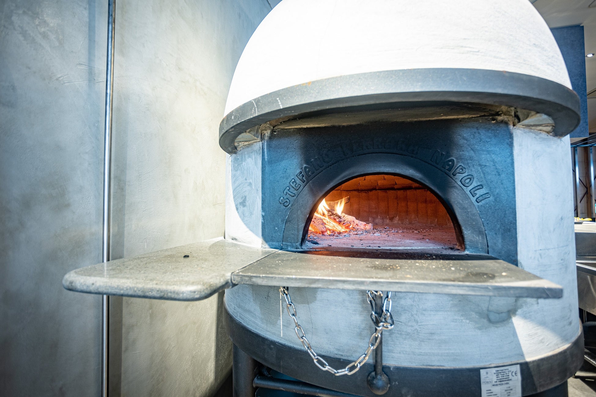 ピッツェリアにとって窯はお店の顔であり、機能性だけでなく、そのデザインも重要な要素。入口を抜けると目の前に君臨する「ステファノフェラーラ」、その存在感にも是非、目を向けてみてください。