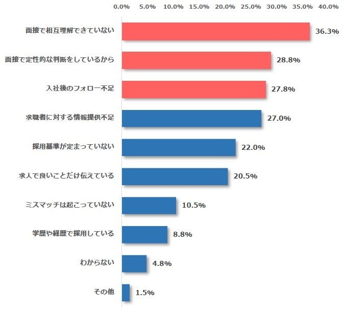 ・採用ミスマッチの原因、最多回答は「面接で相互理解できていない(36.3%)」