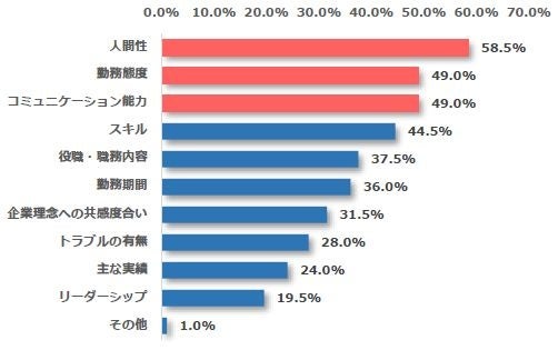 ・リファレンスチェックで重要視する項目TOP3は、「人間性」「勤務態度」「コミュニケーション能力」