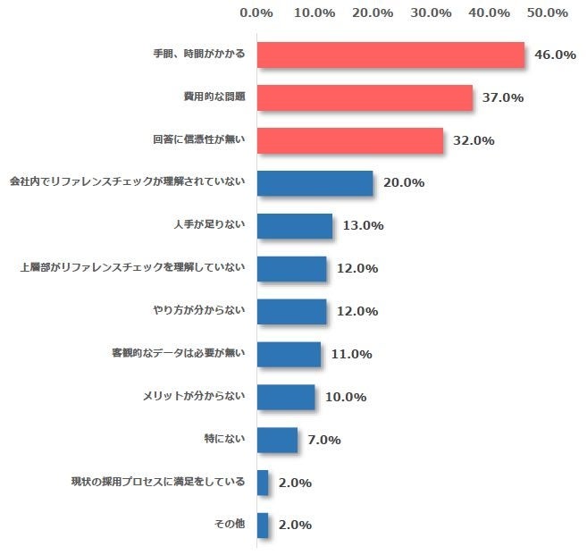 ・リファレンスチェックを実施していない理由、最多回答は「手間、時間がかかる(46.0%)」