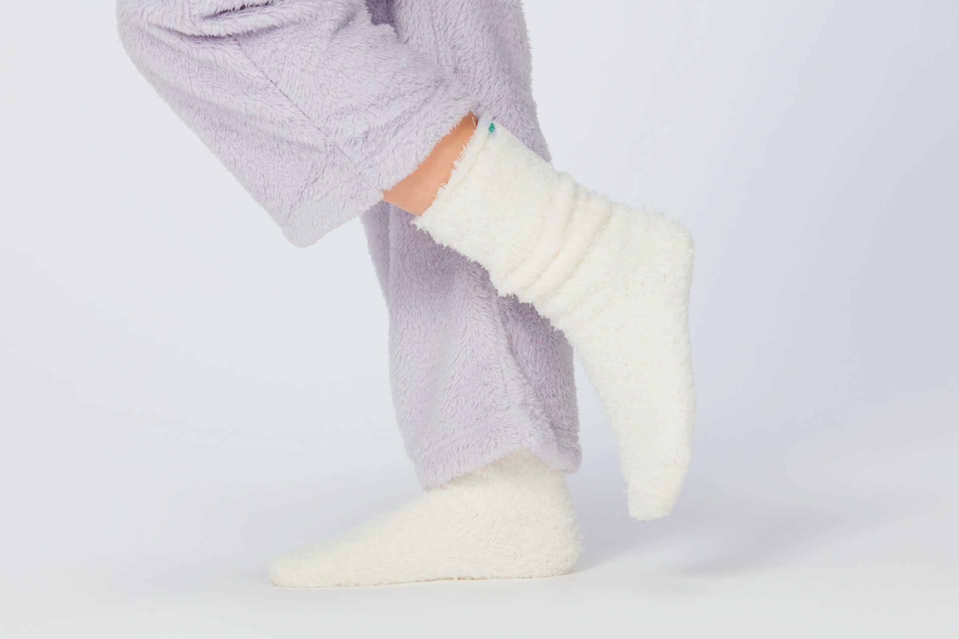 ルームソックスは韓国の糸を採用。韓国の糸は欧米向けファッションアイテムに使用されていることが多く、普段目にすることが少ない見た目や肌触りに特徴のある糸が多く使用されています。タッチも非常にやわらかくなめらか。履き心地も良く、自分用はもちろんプレゼントにもおすすめです。