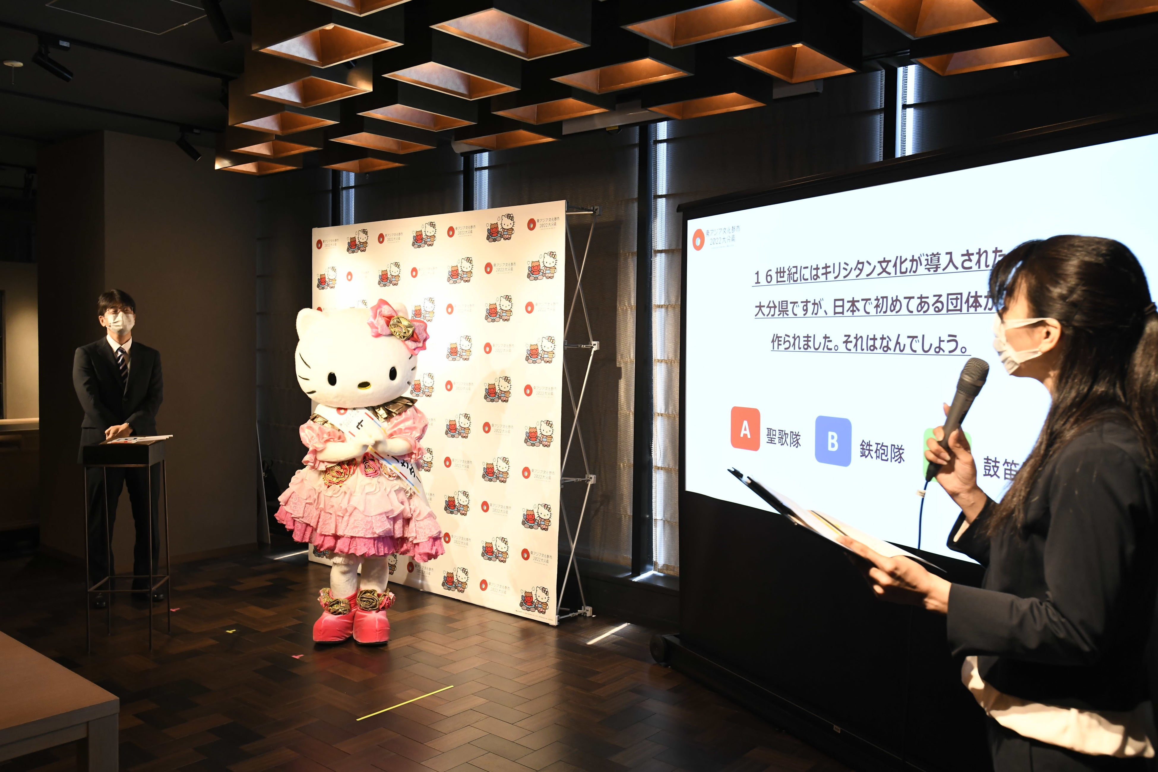 広報アンバサダーのハローキティが登場!大分県に関するクイズにも挑戦