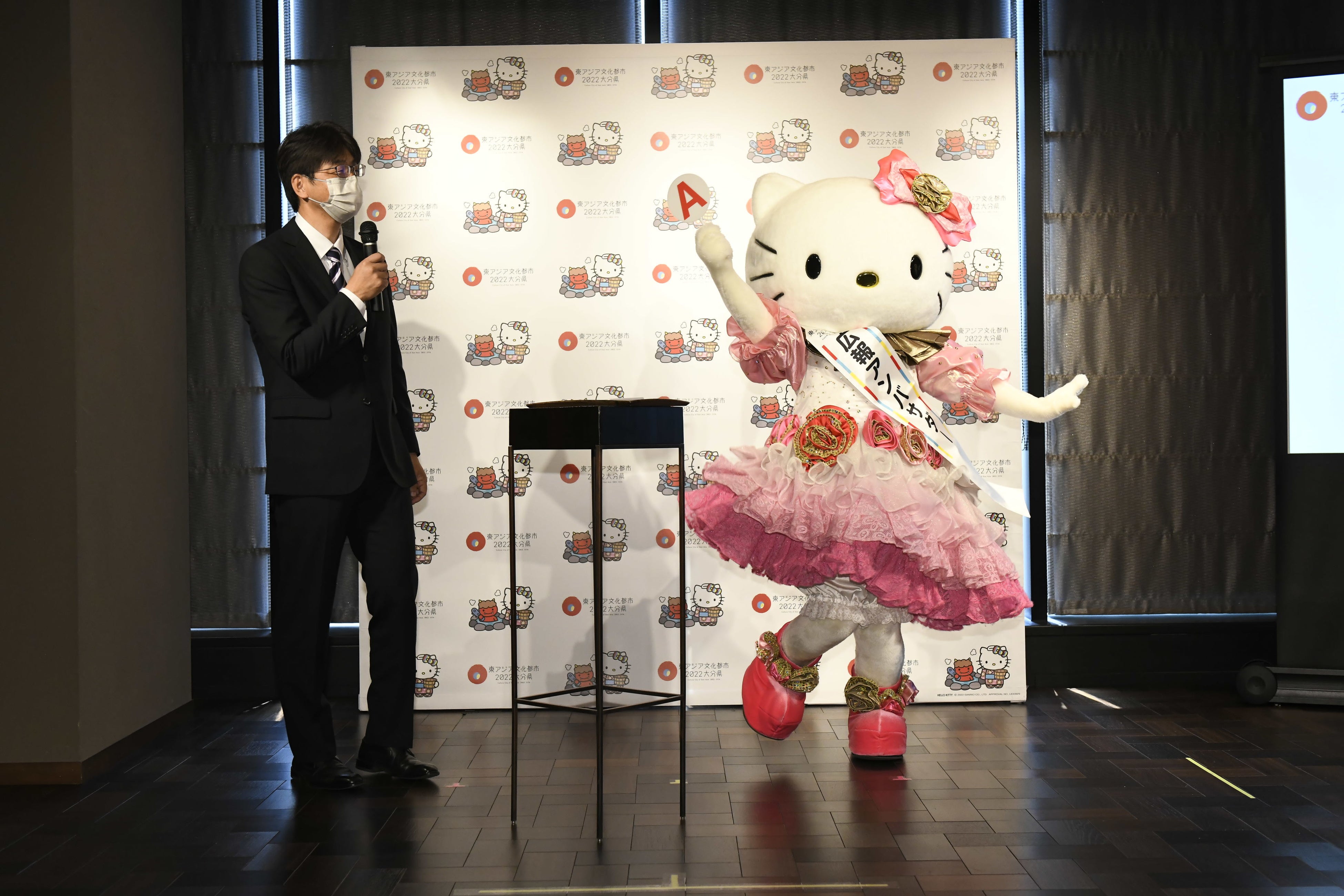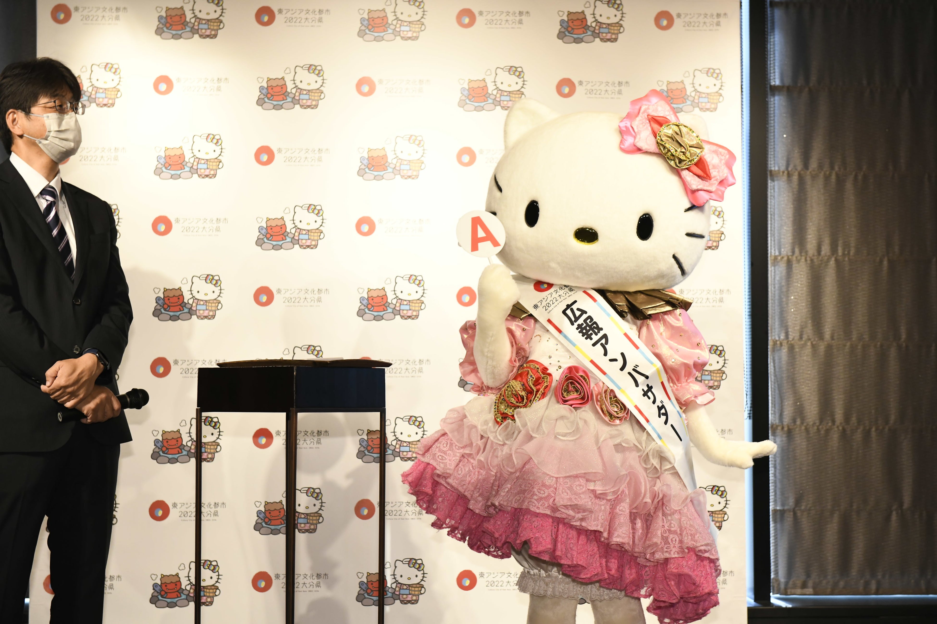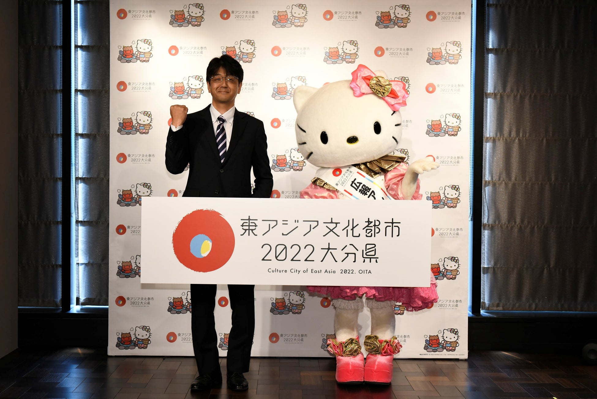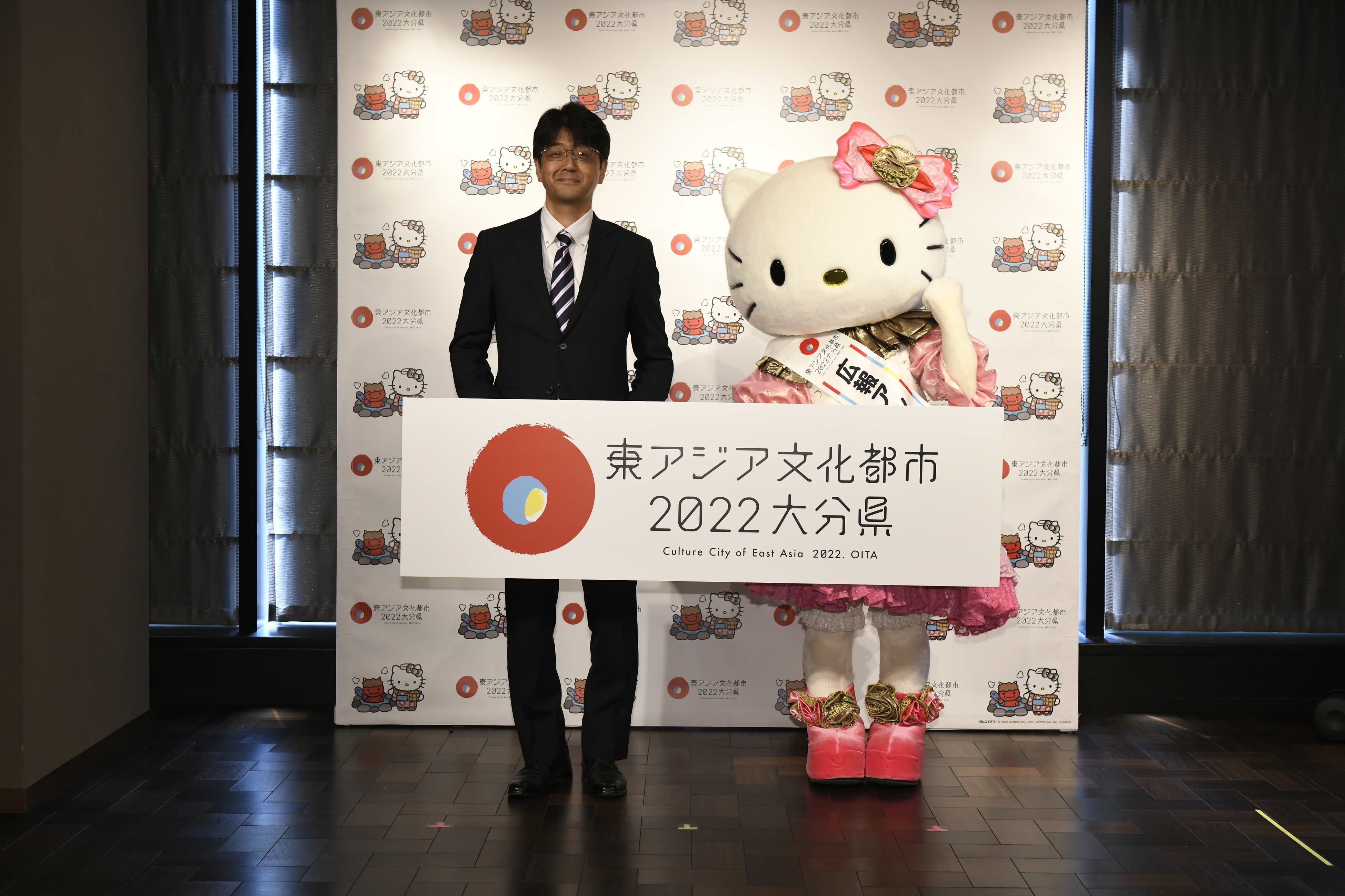 5月18日(水)に行われた事業発表会では大分県企画振興部芸術文化スポーツ振興課 課長 足立博と広報アンバサダーに就任したハローキティが登壇しました。