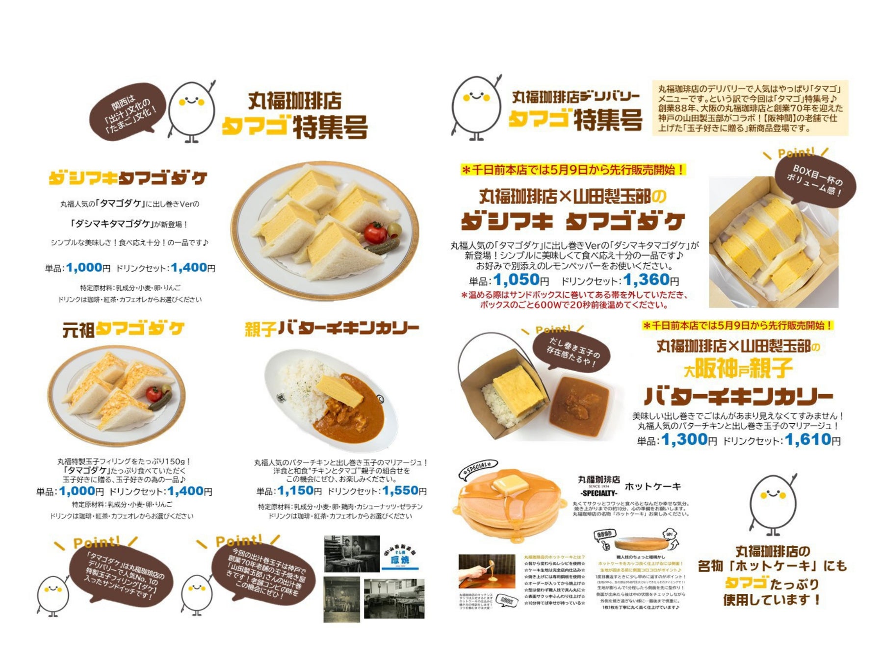 株式会社山田製玉部、丸福珈琲店とのコラボ企画「ダシマキタマゴダケ」「親子バターチキンカリー」の販売を、5月16日より丸福珈琲店の関西店舗を中心に開始