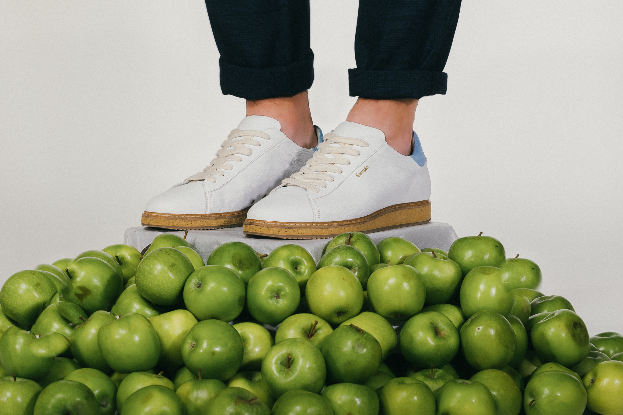 ジュースに使用されるリンゴの廃棄物を再利用して作られた靴『Sampla footwear』