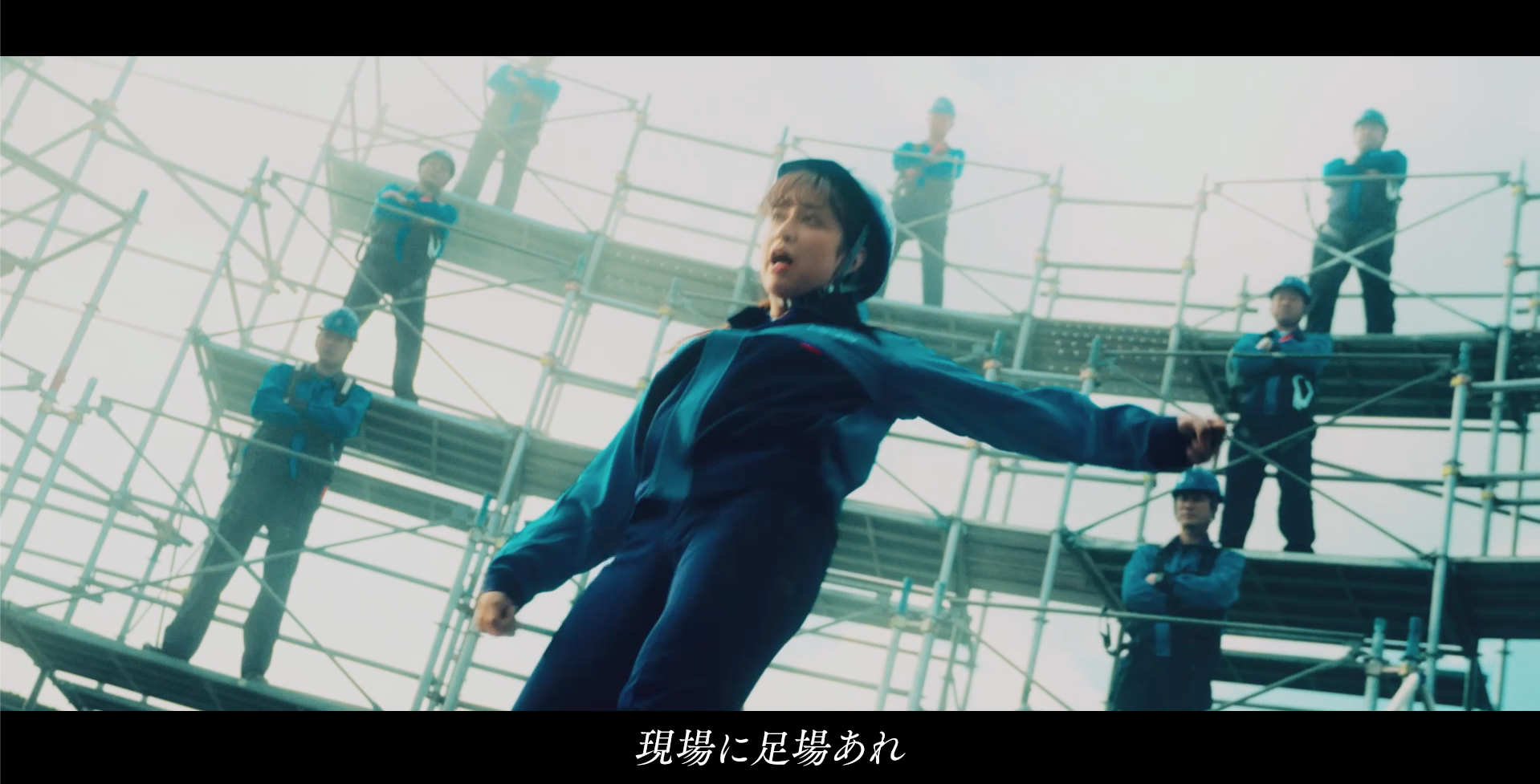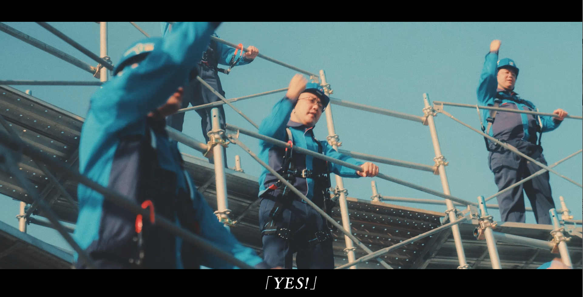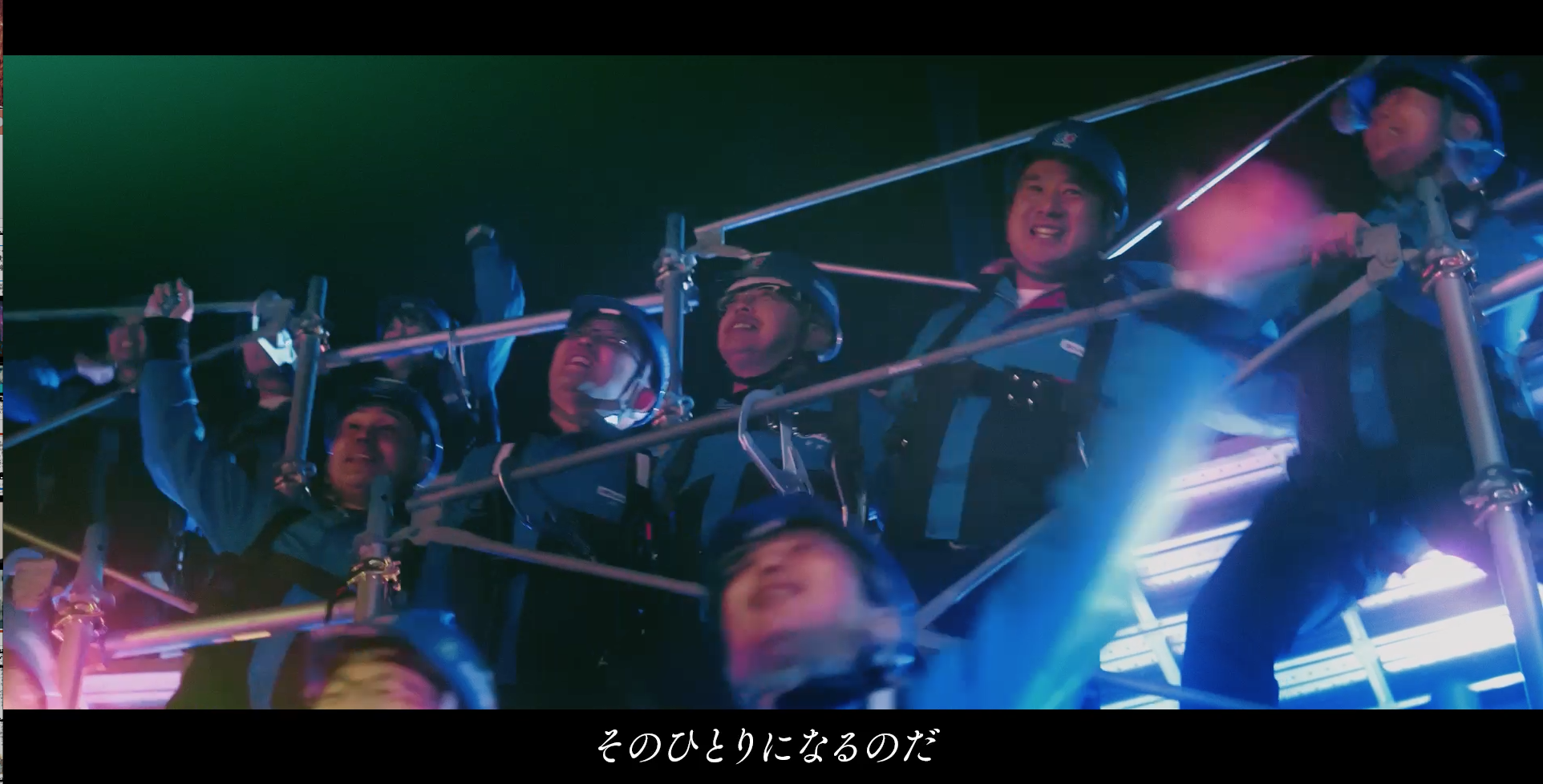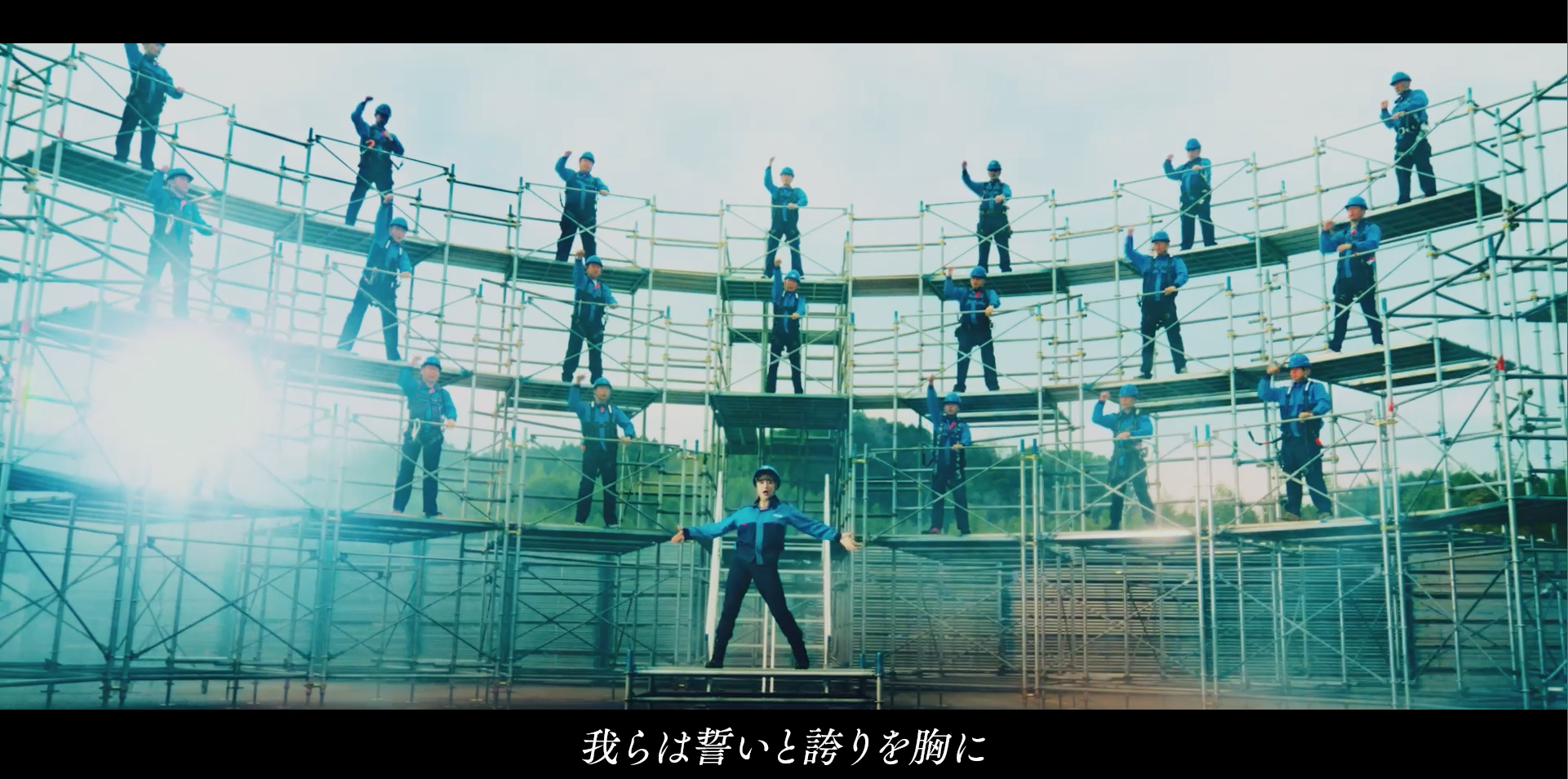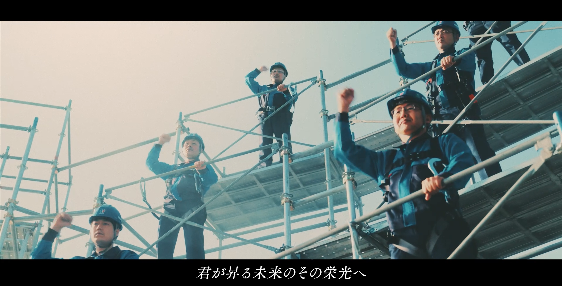 撮影に参加した社員からは“最初は歌うことに抵抗もありましたが、演出で作り込まれた足場ステージの上で声を合わせてみんなで大合唱するに連れて、なんとも言えぬ一体感が生まれ、苦楽を共にする仲間たちとの絆が深まりました!”といった声が寄せられました。