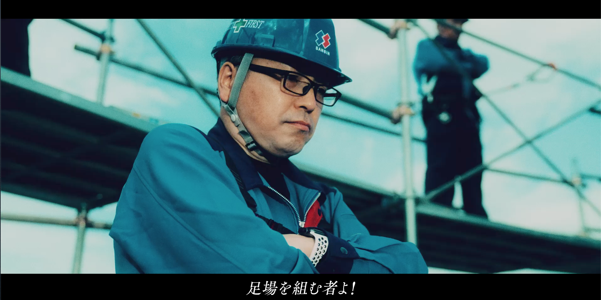 『足場を組む者たちの歌』は、『レッツ!ドボクサイズ!』に込められたメッセージと、音楽に乗せて建設業界の魅力を新しい形で伝えるという様式を受け継ぐかたちで創られた、“大分発肉体労働賛歌”の第二弾とも言えるムービーです。