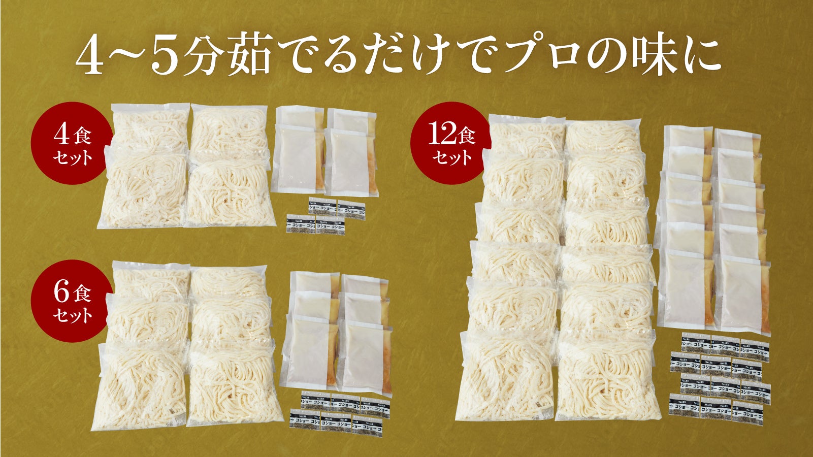 <麺>お湯を沸かし、約4分間茹でてお召し上がりください。茹で時間を5分に伸ばすと、より柔らかい食感を楽しめます。