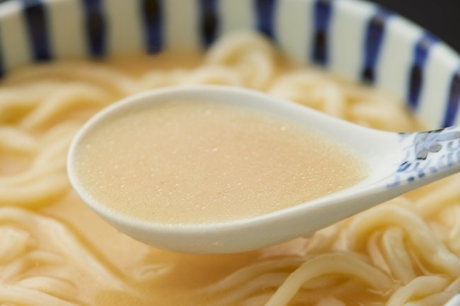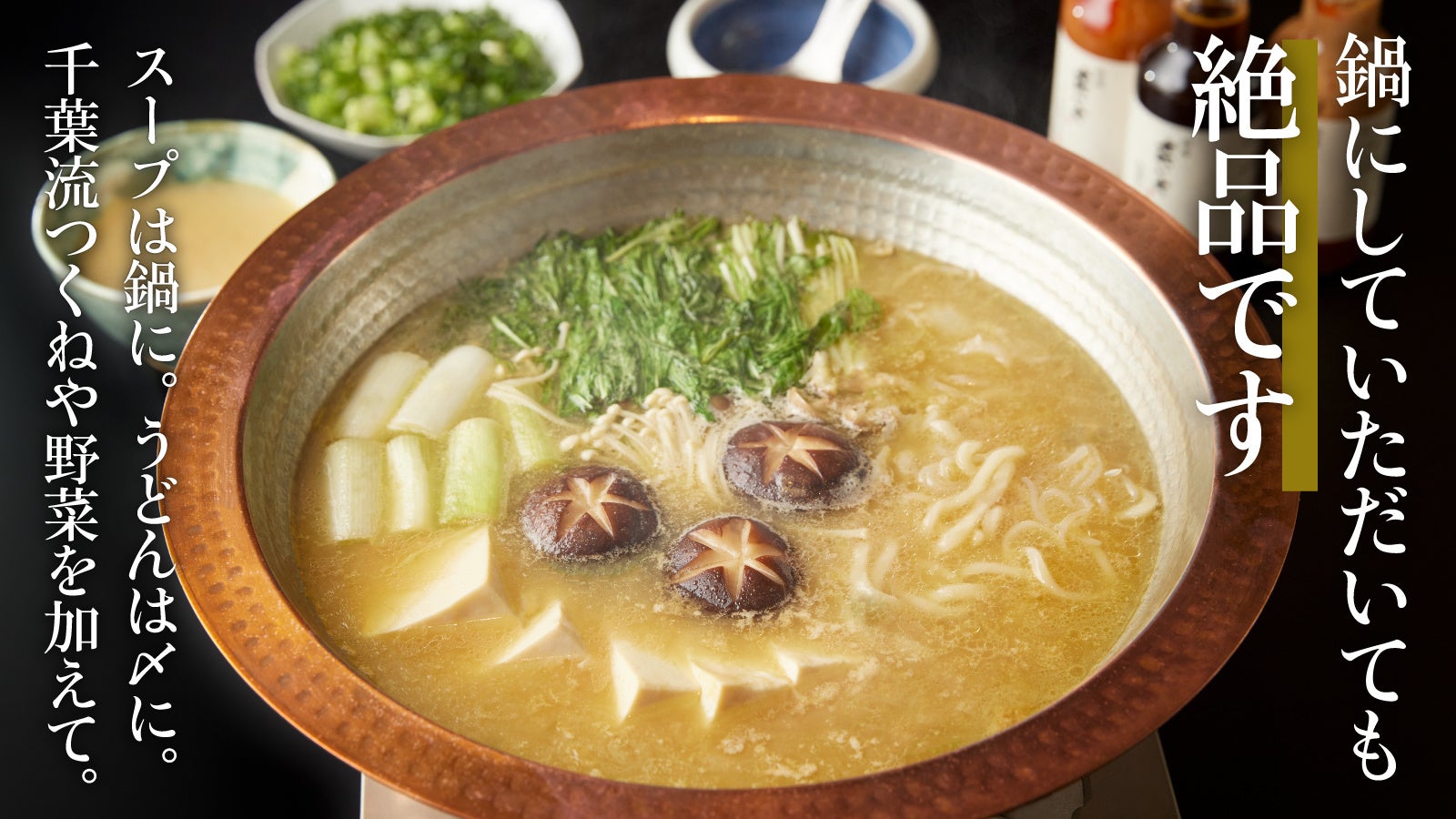 ラーメン店〈ちばき屋〉のファンも知らない、約25年前に千葉氏が挑戦した味があります。鶏白湯スープのラーメンです。「スープはうまい、でもラーメンとの相性に納得できず〈ちばき屋〉では出さなかった。秘蔵の鶏白湯スープを、うどんに合わせて再調整。そして、25年越しの挑戦の味がついに完成しました。