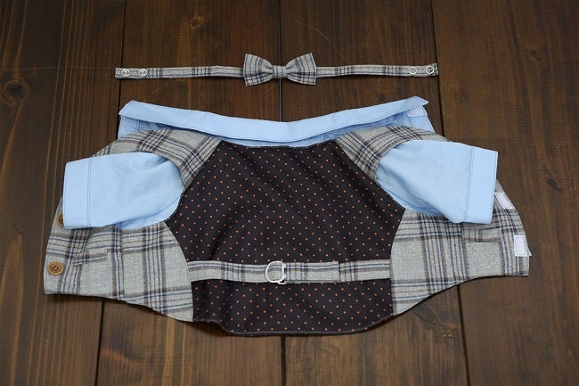 - 人間用オーダースーツ・シャツと同一の海外有名ブランドの生地群、最高級裏地群、宝石ボタンを含む高級ボタン群の組み合わせから一点物を作成します。