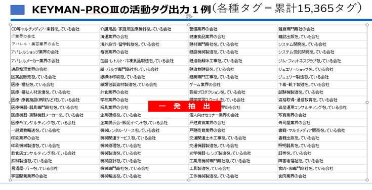 1.大企業を含む120万社の法人情報と拠点・部署連絡先情報データを完備・・・各種タグで関連する企業抽出