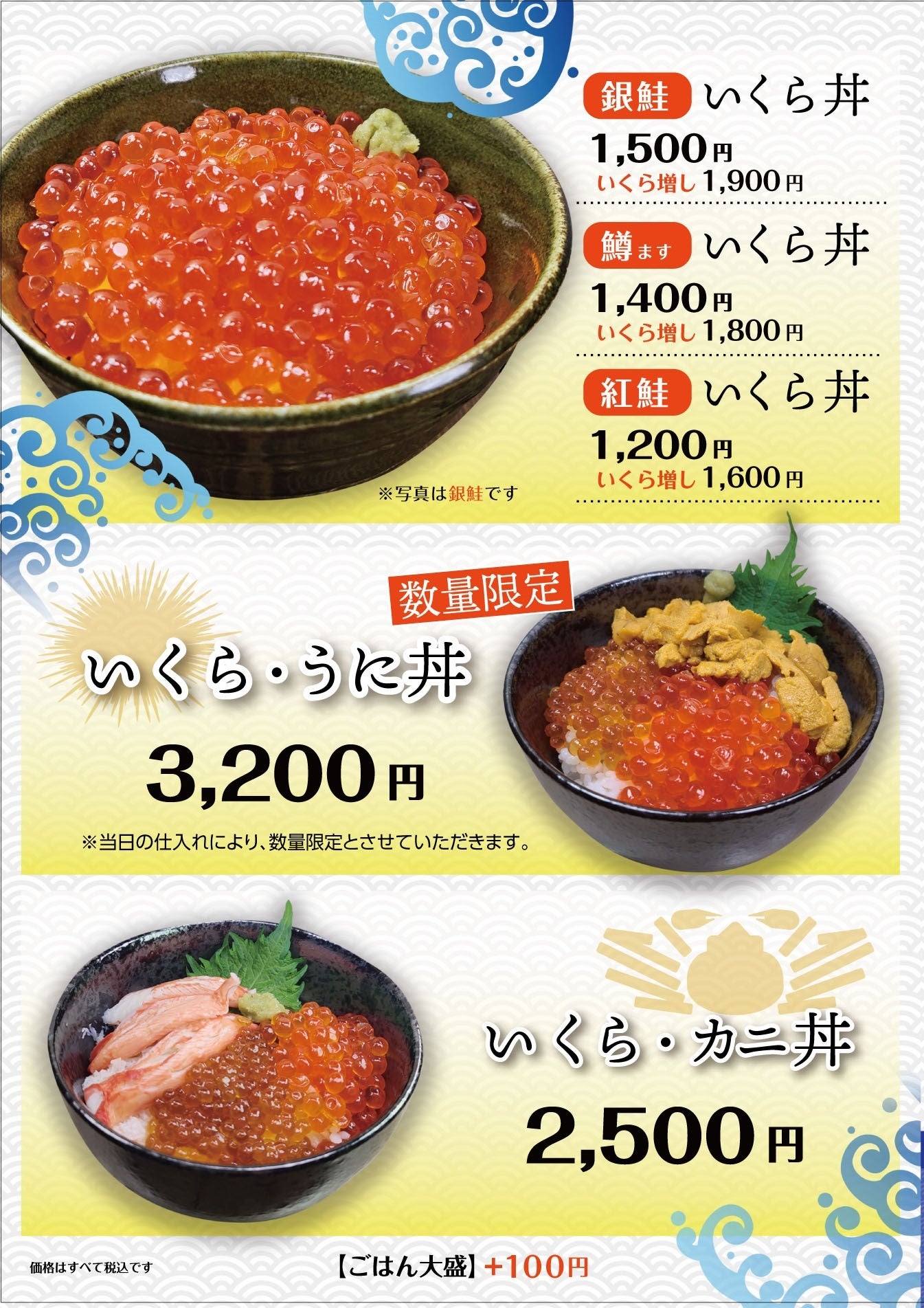 つぶつぶ食感がクセになる高級食材いくらをふんだんに使った絶品メニューが堪能できます。新鮮な海の幸を贅沢に盛り付け、リーズナブルなお値段でご提供させてもらっています。