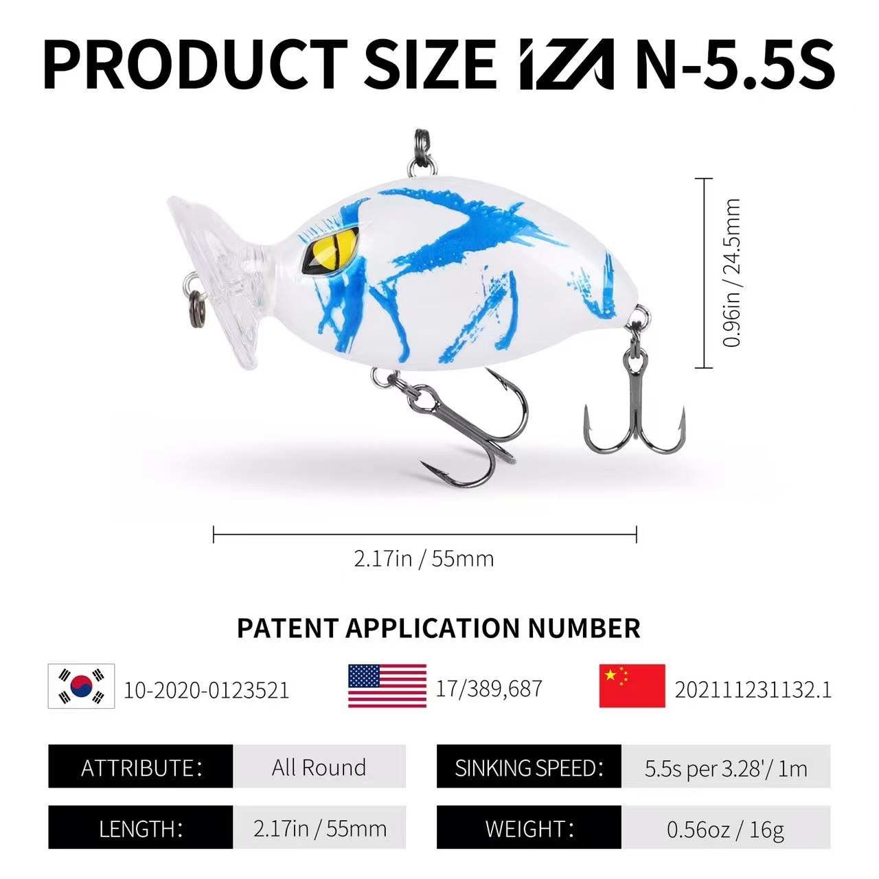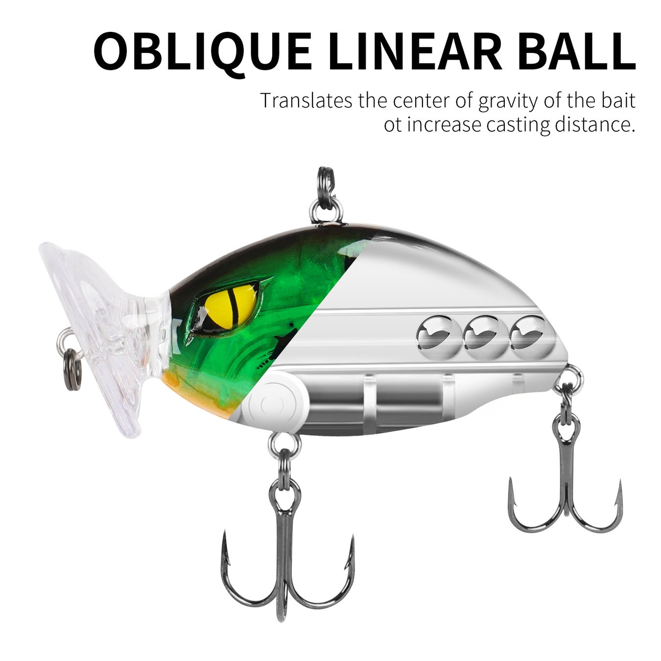 IZAシンクアップベイトは、ベイトの重心を変換する斜めリニアボールシステム(OLB)を備えています。キャスティング時の重心移動による回転防止で飛距離増加。(キャスティング中のスピンからルアーを保護することもできます。)またターゲットを引き付けるためにガラガラ音を生成することができます。