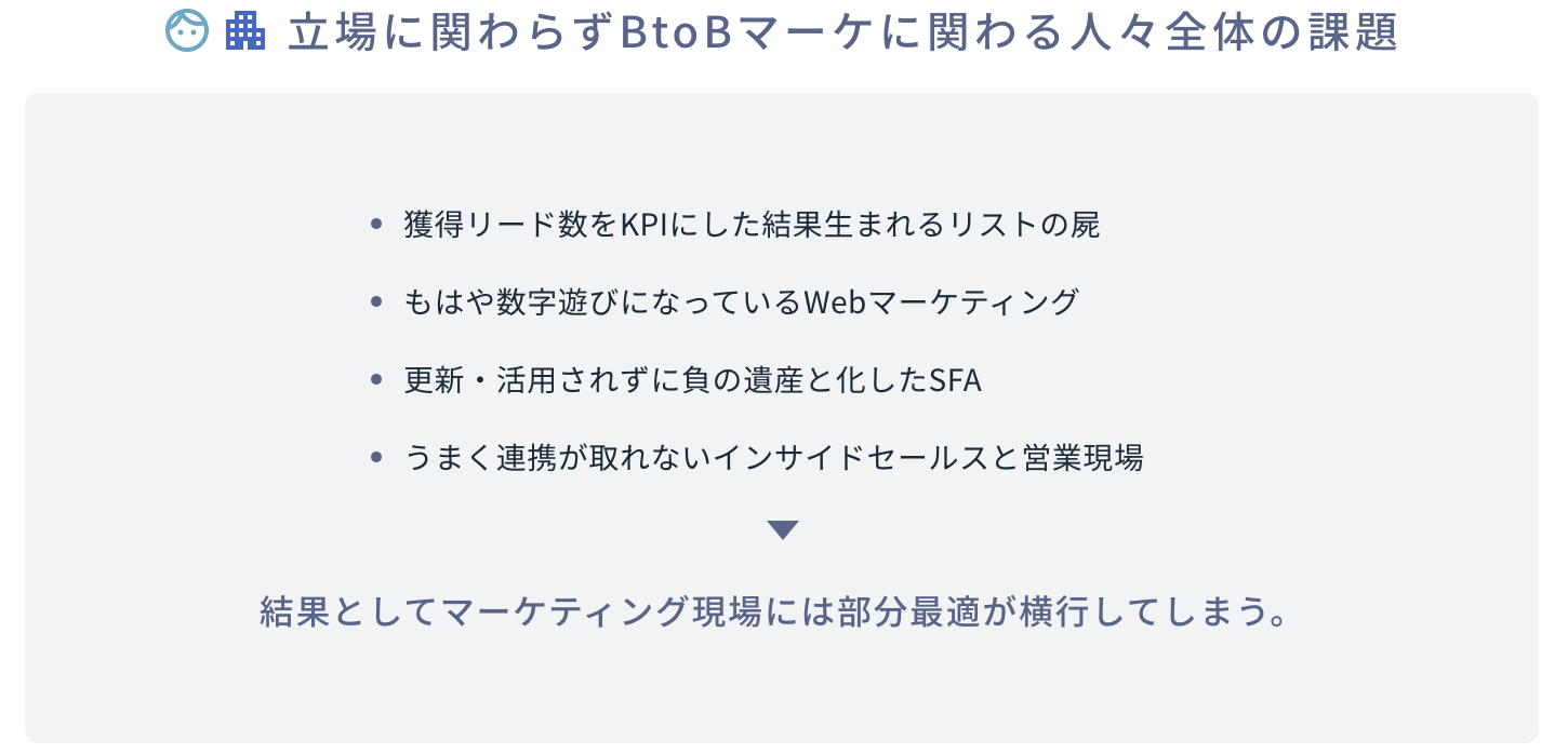 またBtoBマーケティングの実行のために共に協力すべき企業内であっても、