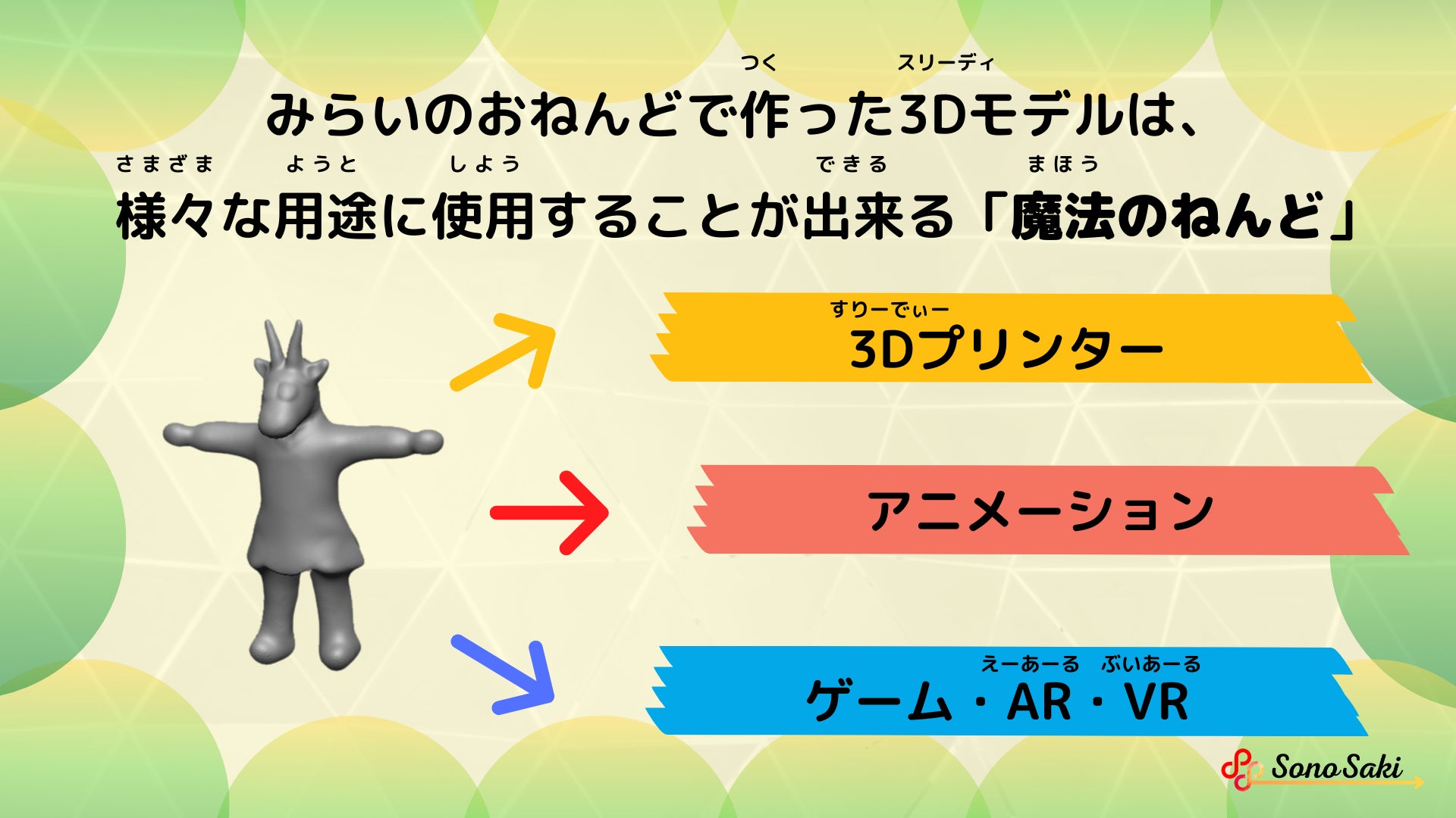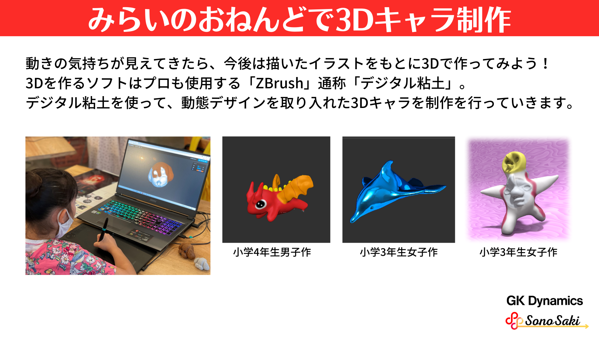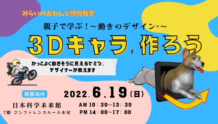 みらいのおねんど教室を運営する株式会社SonoSaki(代表取締役:戸田 勝也 https://sono-saki.jp)と株式会社GKダイナミックス(https://www.gk-design.co.jp/dy2/)は、2022年6月19日に日本科学未来館 7F コンファレンスルーム木星にて動態デザインと3DCGを学ぶ特別講座を開催します。