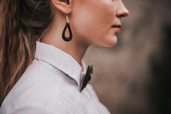 ペアの木製ピアス「ミーア」は、同じ木から切り出してあり、「アンテロ」に重ねるとピッタリとはまるようデザインされています。カップルで特別なイベントなどで、さりげないペア・アクセサリーとしておつけいただけます。「Makuake」にて、蝶ネクタイとのセットでご購入いただけます。
