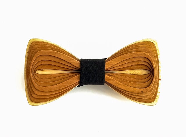 「Makuake」で限定先行販売するモデルは、Hermandiaのベストセラーモデル、アンテロ。クラシックな蝶ネクタイを斬新に解釈し、作り上げた逸品です。切り取った木の板を何層かに重ねた立体感のあるデザインは、「人生の階段を一段ずつ上がっていく」ことを表現しています。